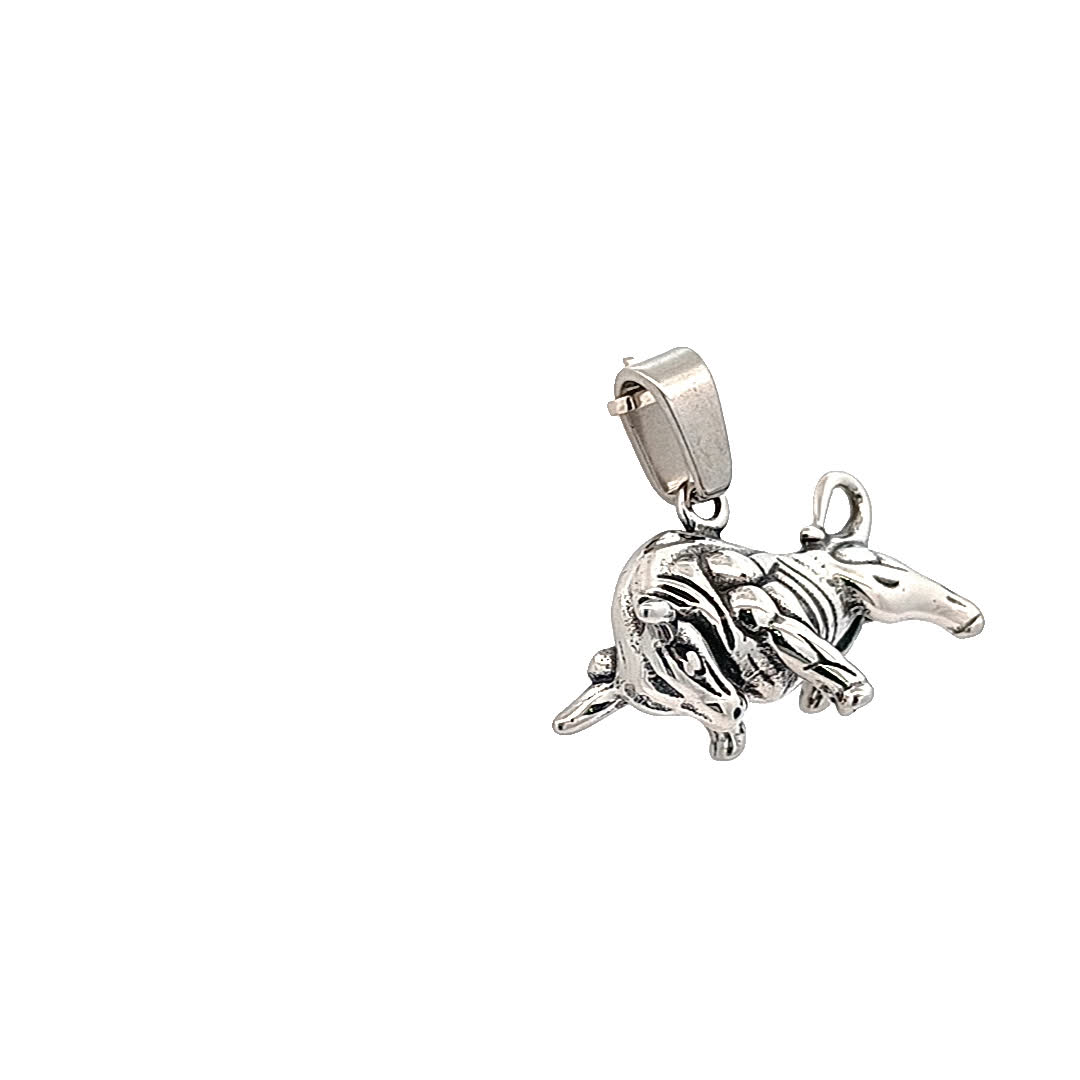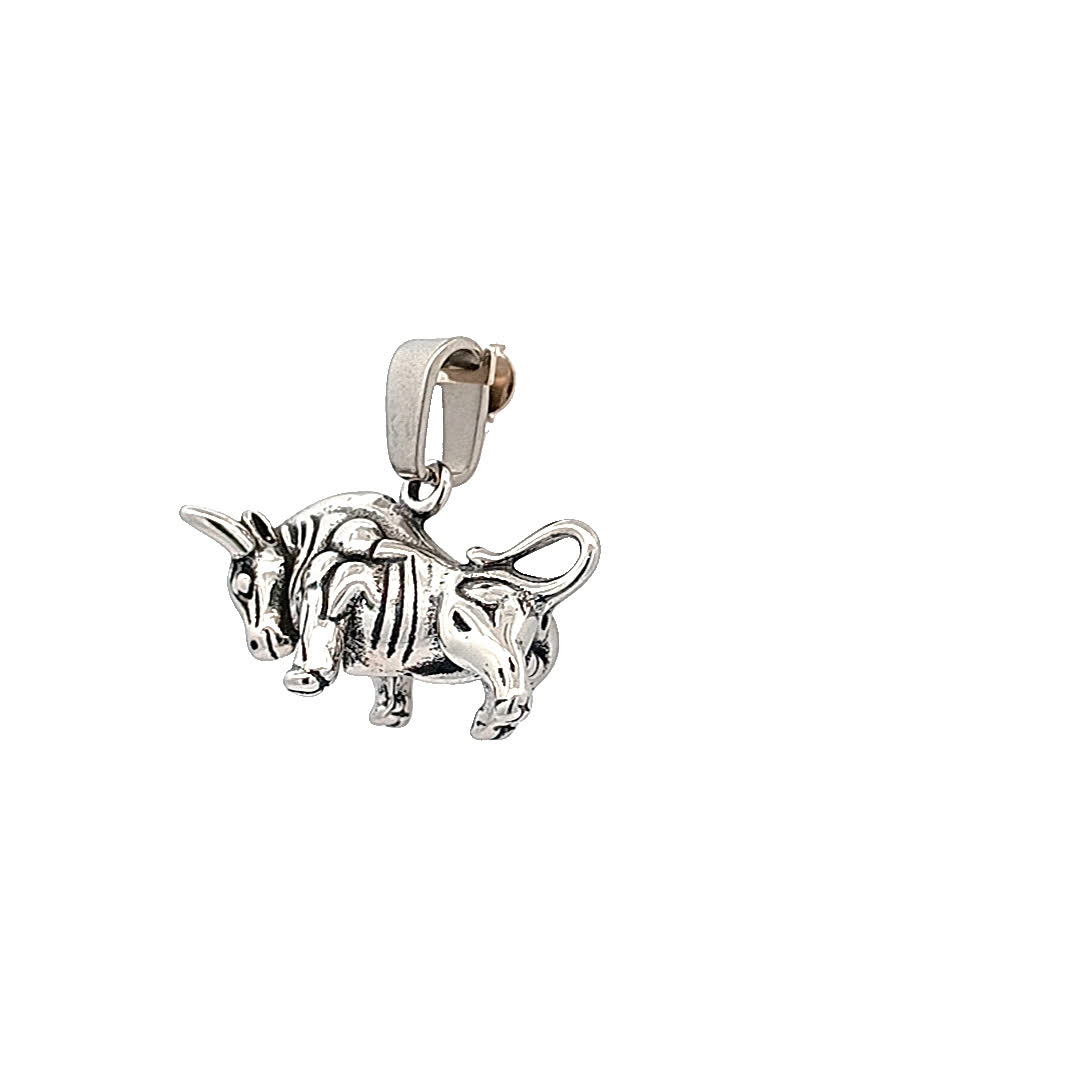 Ten wykwintny posrebrzany wisiorek w kształcie byka uchwyca istotę siły i determinacji. Wykonany z misternymi detalami, prezentuje pięknie zaprojektowanego byka w dynamicznej pozie, co czyni go idealnym dodatkiem dla tych, którzy cenią wyjątkową biżuterię. Noś go jako symbol odporności lub podaruj komuś, kto uosabia te cechy.
