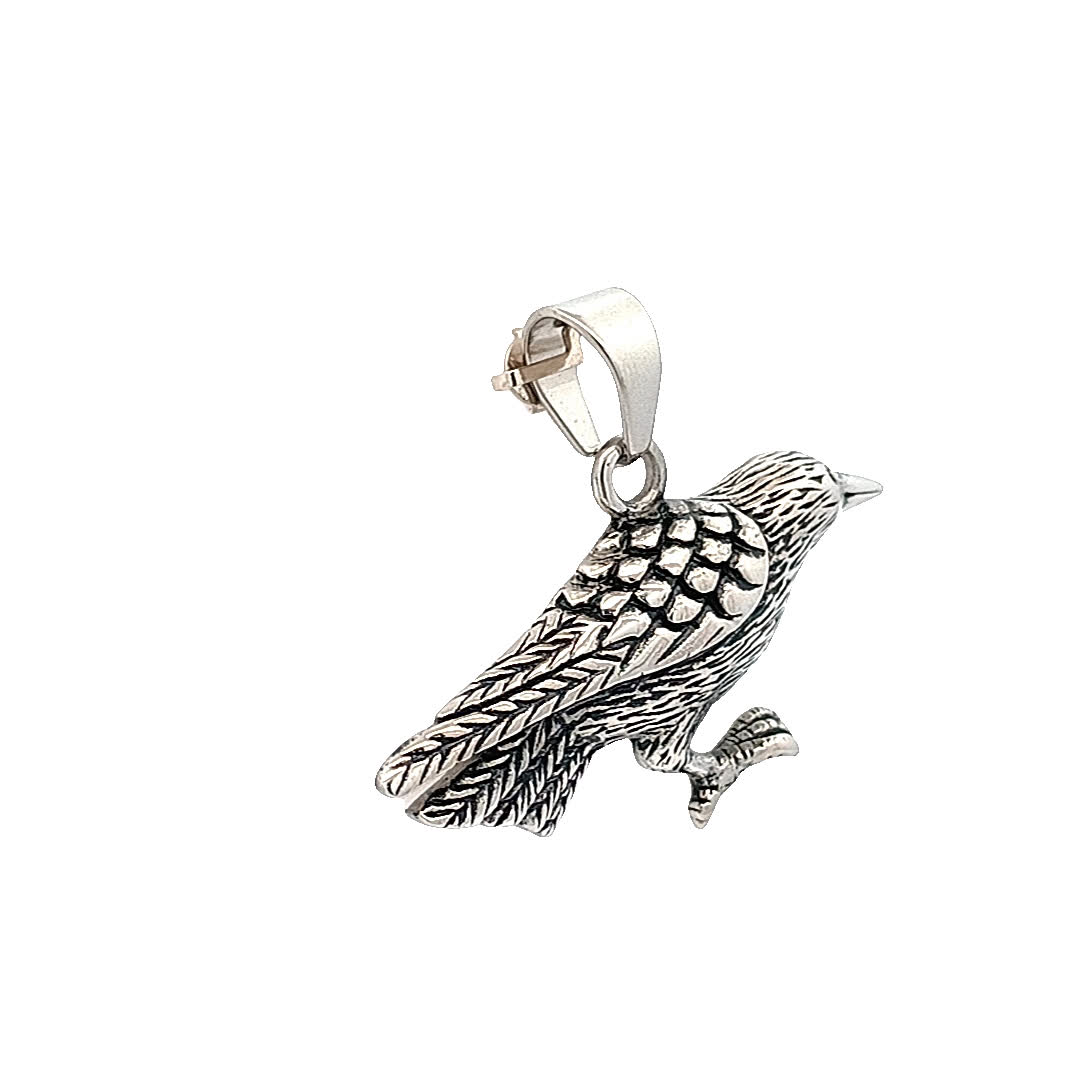 Elegancki posrebrzany wisiorek w kształcie ptaka