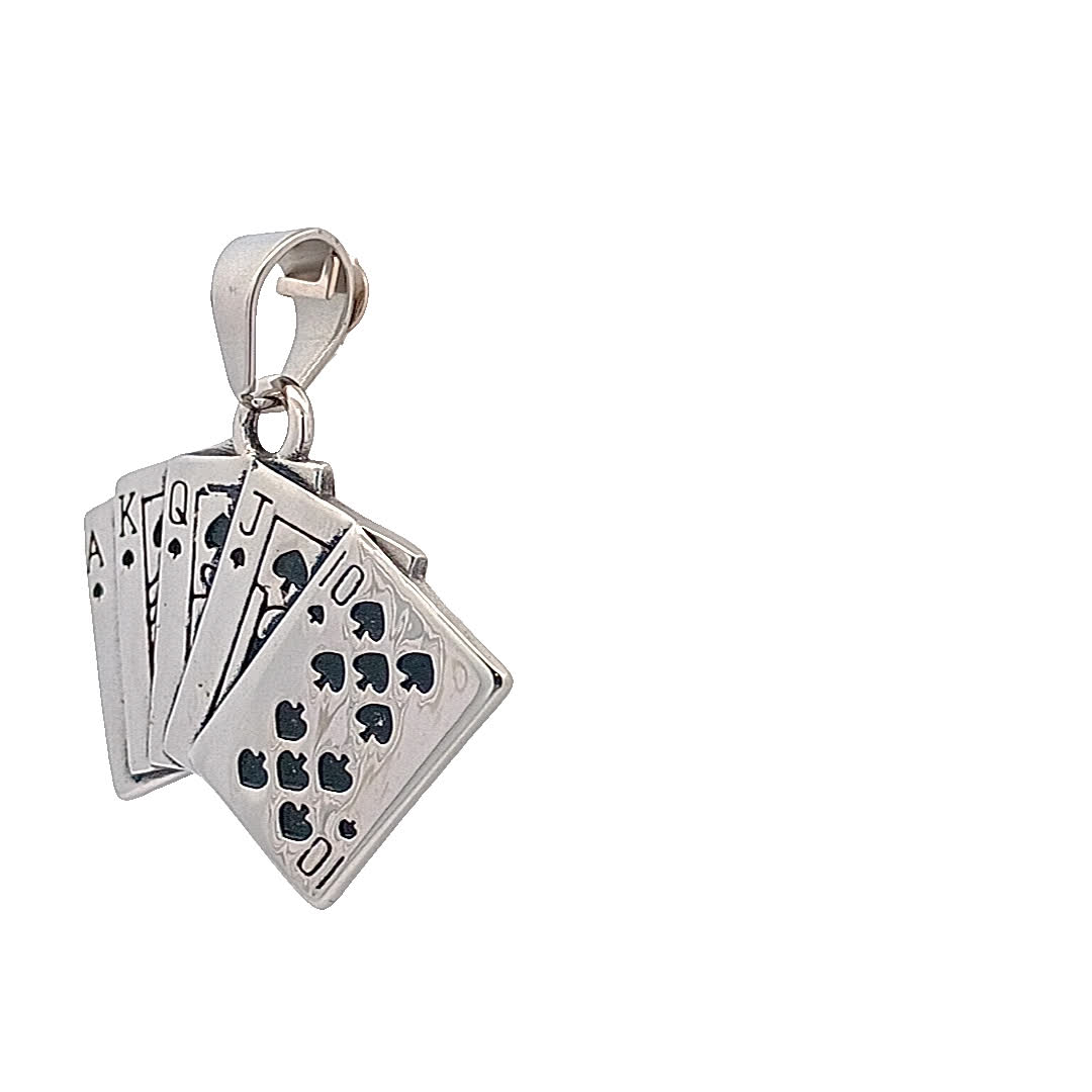 Ten wyjątkowy wisiorek ma oszałamiający wzór kart do gry, eksponując Asa do Dziesiątki Pik. Wykonany z wysokiej jakości metalu, dodaje zabawny, ale wyrafinowany akcent do każdego stroju. Idealny dla miłośników kart lub każdego, kto chce się wyróżnić swoją biżuterią.