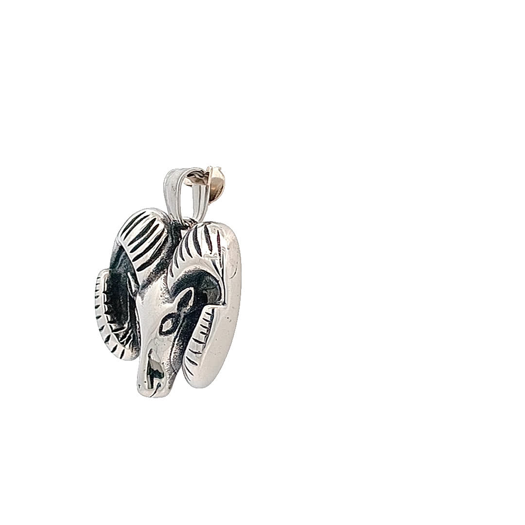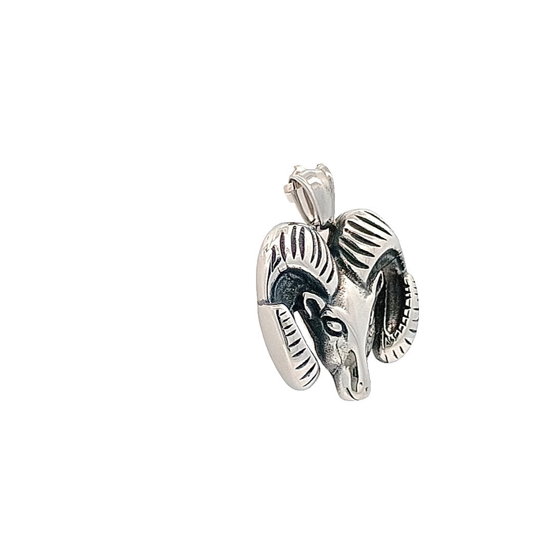 Ten efektowny posrebrzany wisiorek ma pięknie wykonany wzór głowy barana, symbolizujący siłę i determinację. Jego skomplikowane detale i polerowane wykończenie sprawiają, że jest to wyróżniający się element każdej kolekcji biżuterii. Idealny dla tych, którzy cenią wyjątkowe i znaczące akcesoria.
