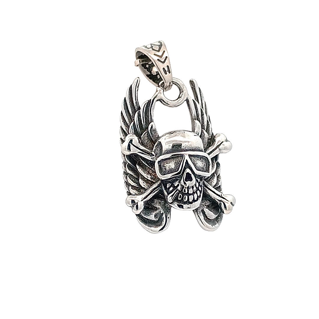 Ten efektowny wisiorek przedstawia szczegółową czaszkę otoczoną majestatycznymi skrzydłami, uosabiającymi śmiałego i buntowniczego ducha. Wykonany z wysokiej jakości stali, dodaje wyjątkowego akcentu do każdej stylizacji, dzięki czemu jest idealny dla tych, którzy odważą się wyróżnić. Noś go jako element oświadczenia lub podaruj komuś, kto akceptuje swoją indywidualność.