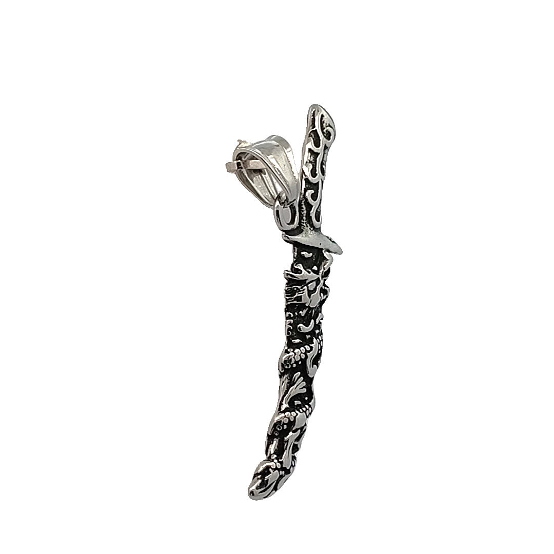 Ten oszałamiający wisiorek w kształcie miecza prezentuje wykwintne rzemiosło, charakteryzujące się misternymi detalami, które oddają istotę siły i elegancji. Wykonany z wysokiej jakości materiałów, jest idealny dla tych, którzy cenią wyjątkową biżuterię opowiadającą historię. Noś go jako wyrazisty element lub podaruj komuś wyjątkowemu, kto kocha wyjątkowe wzory.