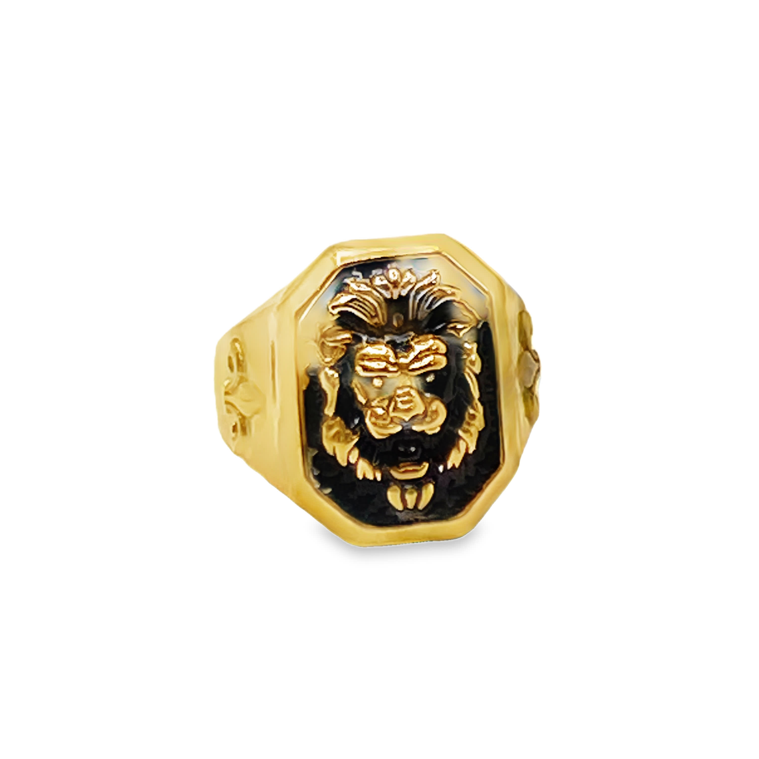 Ten efektowny złocony sygnet zdobi starannie wykonany symbol lwa, emanujący siłą i szlachetnością. Solidna złocona obrączka gwarantuje trwałość i wygodę noszenia, czyniąc go wyrazistym dodatkiem dla każdego wymagającego mężczyzny. Idealne połączenie klasycznego wzornictwa i wyrazistej symboliki.