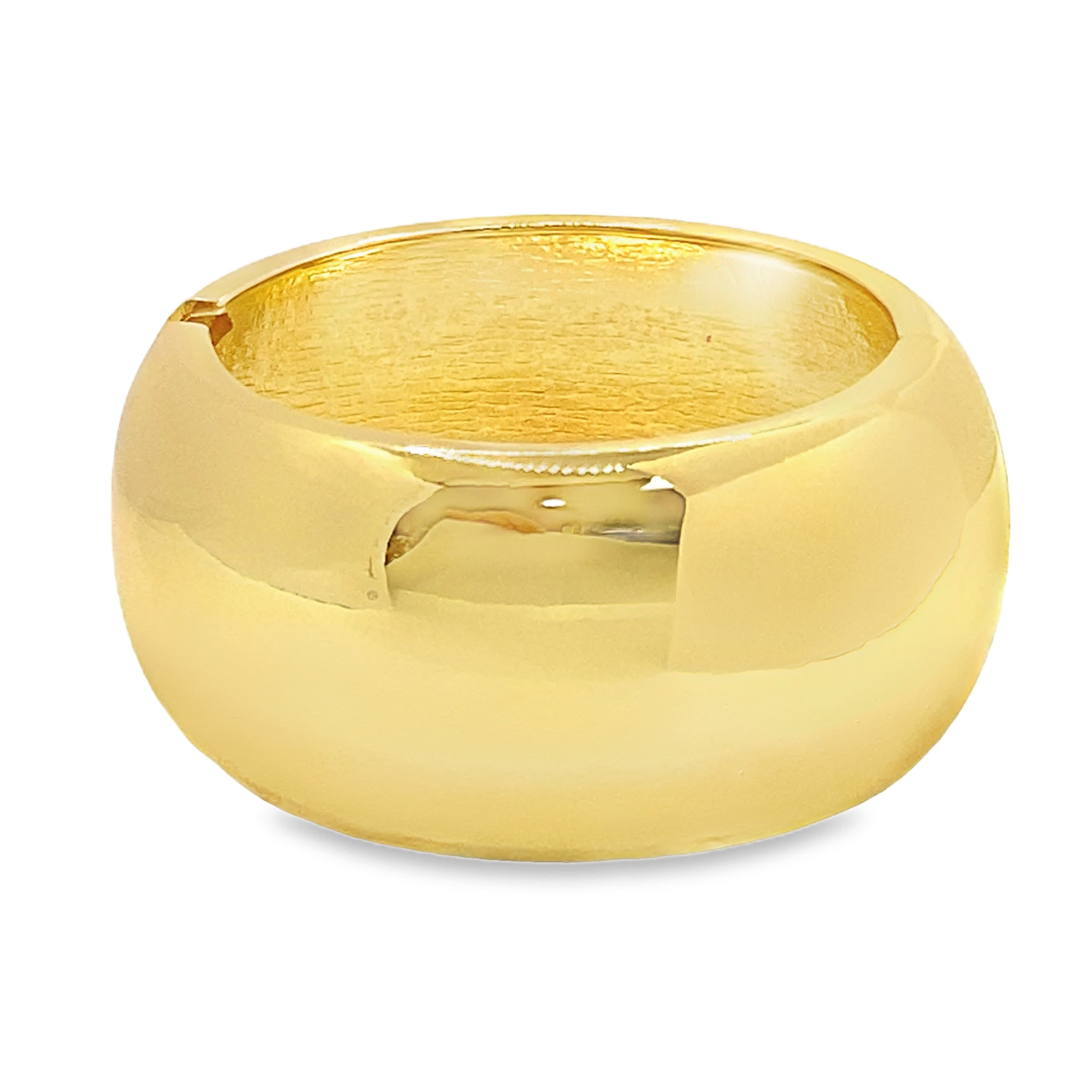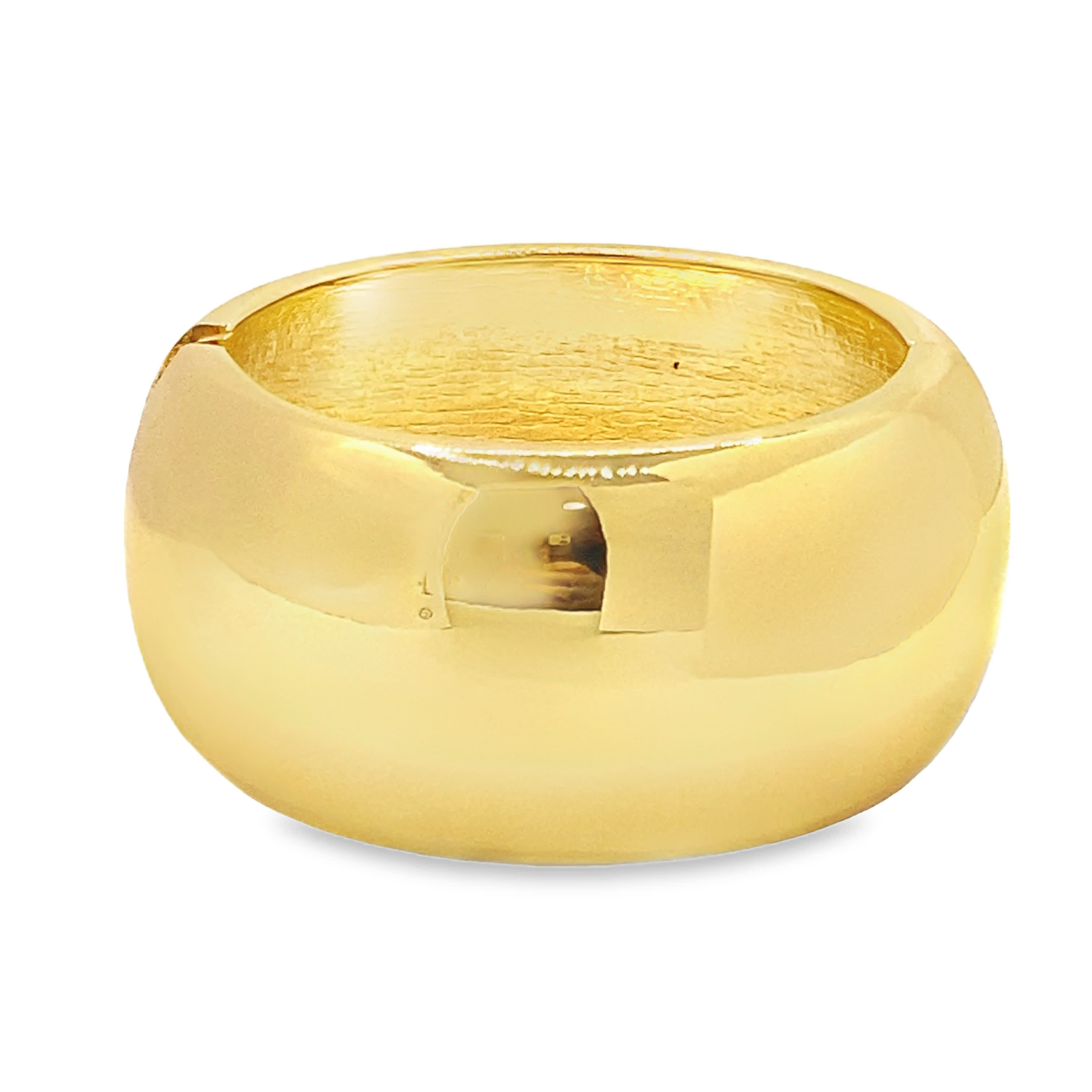 Podkreśl swój strój tą polerowaną bransoletą ze złoconej stali. Ten ponadczasowy element charakteryzuje się lśniącą, wysoce odbijającą światło powierzchnią, idealną do dodania odrobiny wyrafinowania do każdej stylizacji. Jej gładki, zaokrąglony kształt zapewnia wygodne dopasowanie i naturalny styl, dzięki czemu jest niezbędnym dodatkiem do każdej kolekcji biżuterii.