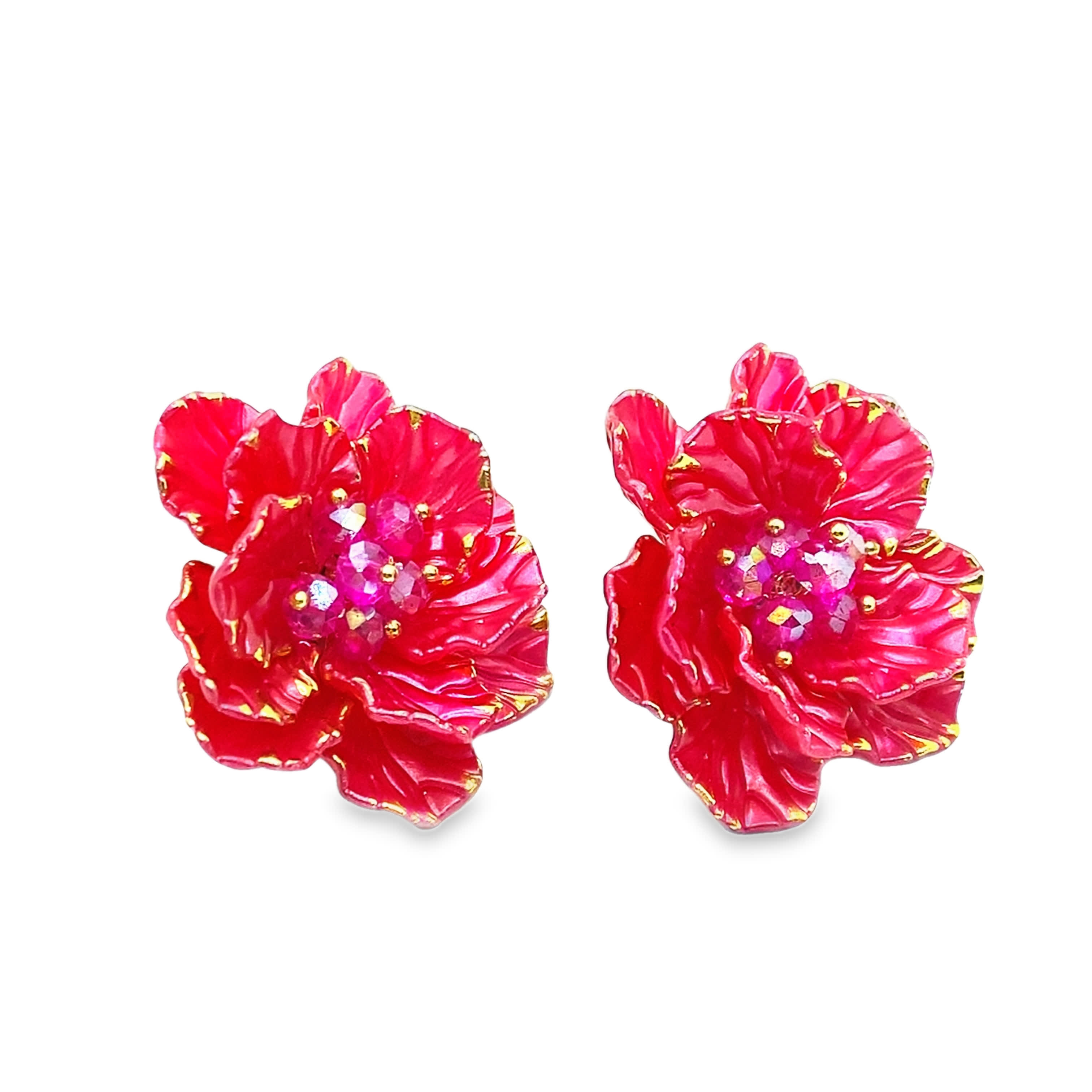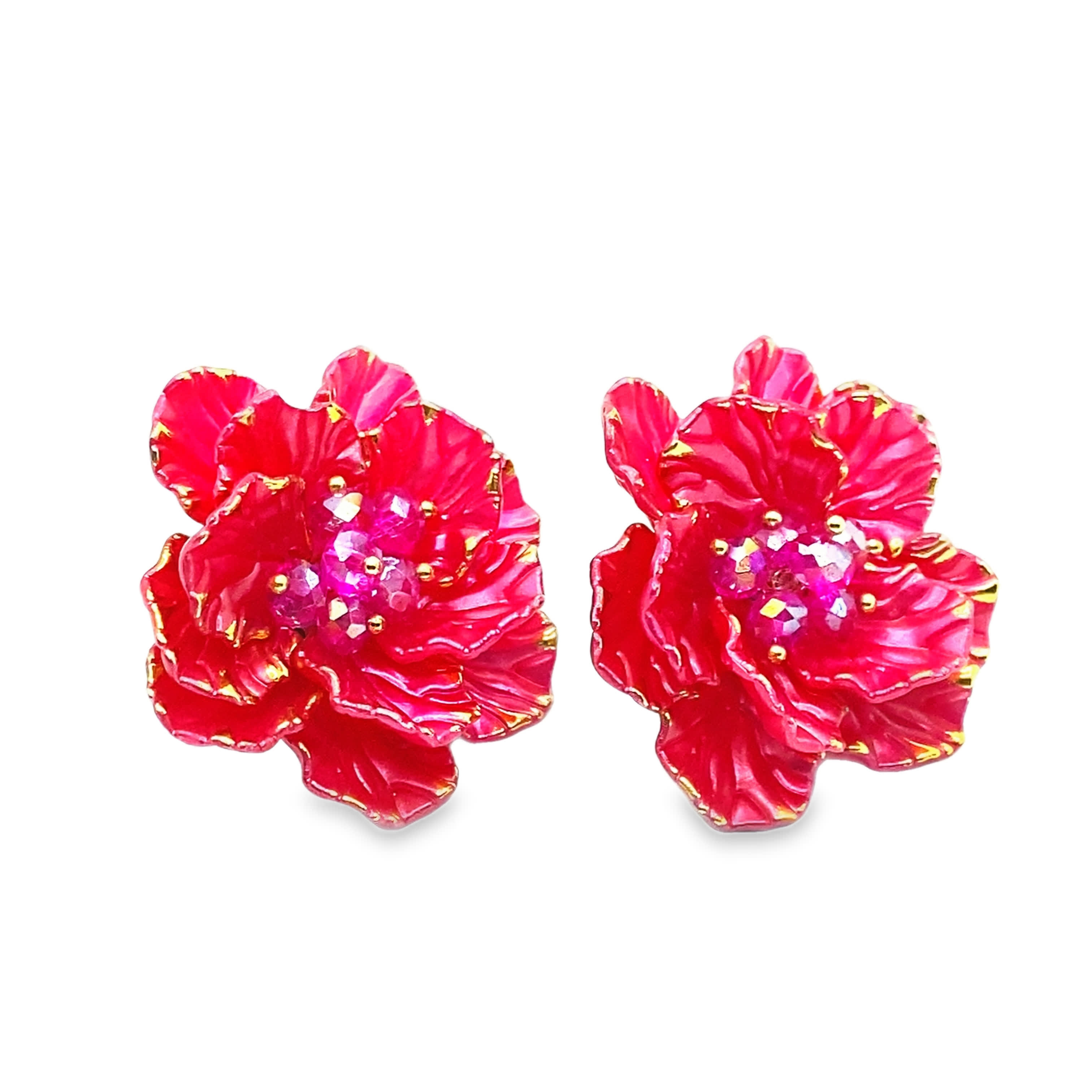 Kolczyki z rubinowymi kwiatami w wykończeniu ze złoconej stali