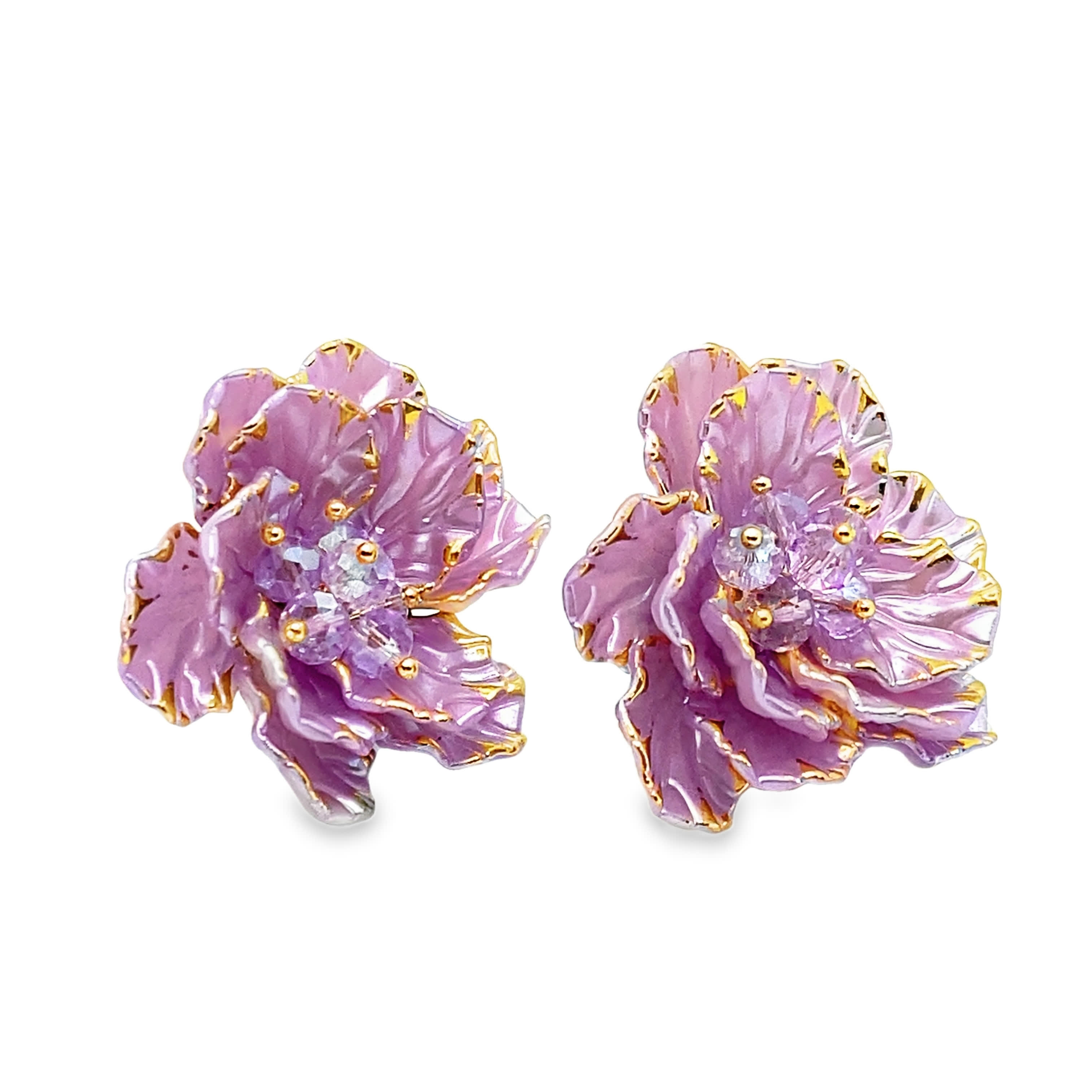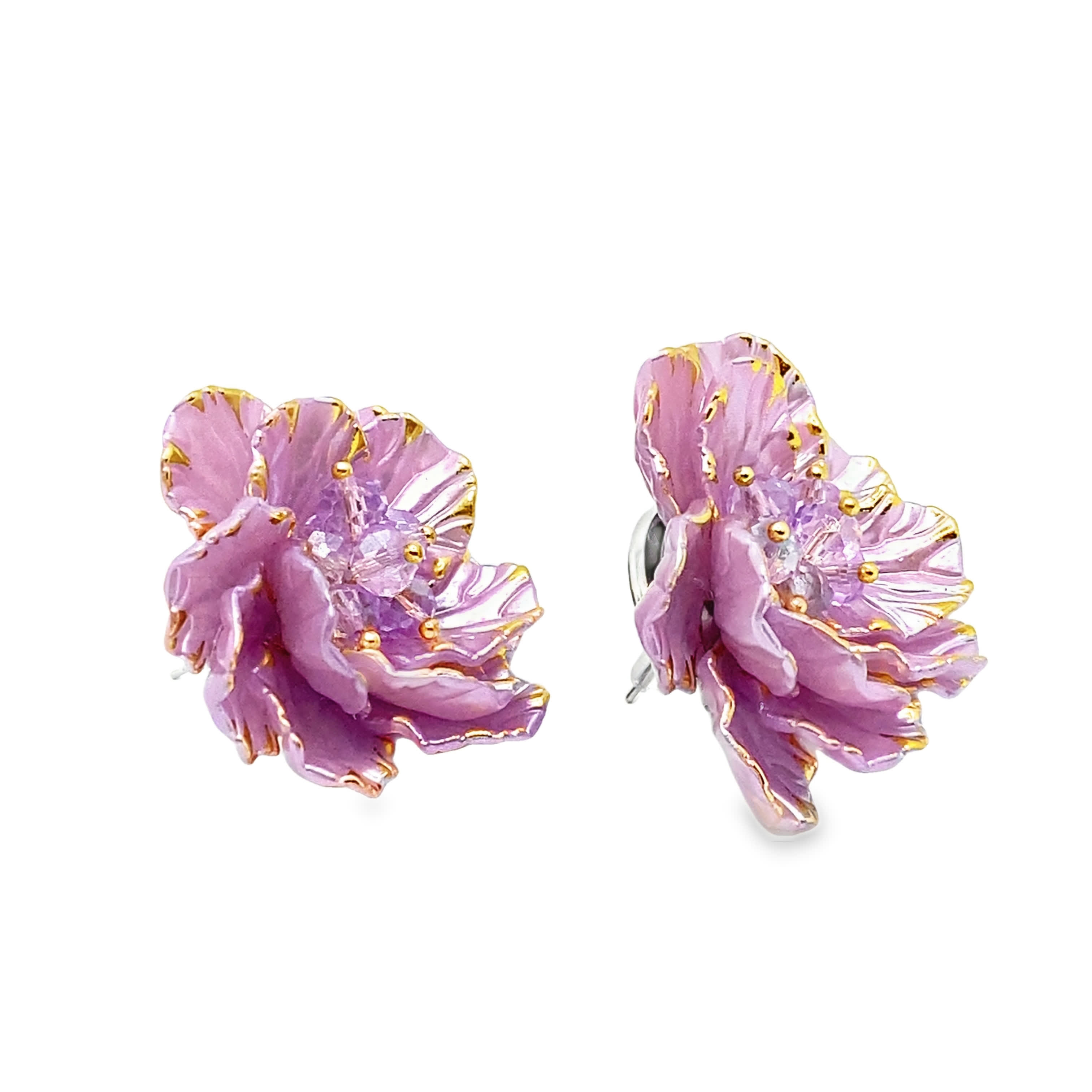 Podkreśl swój styl tymi czarującymi kolczykami-sztyftami, kunsztownie wykonanymi z delikatnych, niemetalowych materiałów i ozdobionymi luksusowymi detalami ze złoconej stali. Okrągłe kryształy o szlifie koralikowym zachwycają hipnotyzującym fioletowym odcieniem, tworząc promienny i wyrafinowany dodatek.