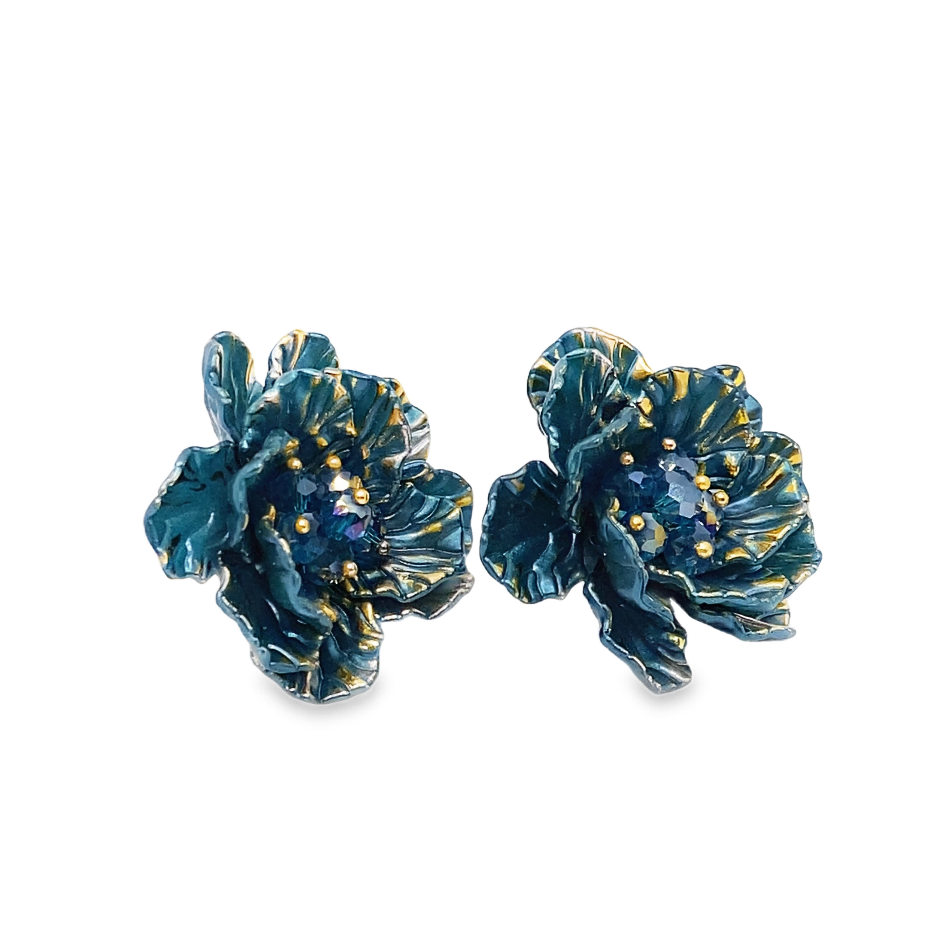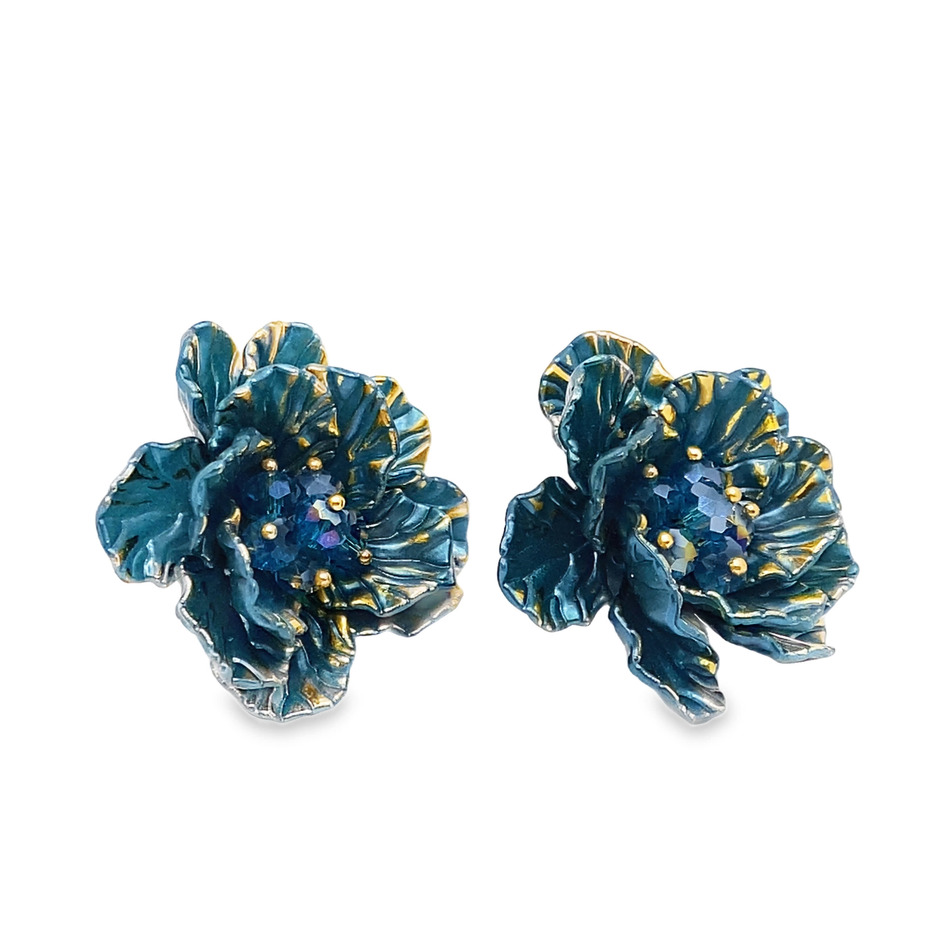 Kolczyki z niebieskimi kryształkami i kwiatami
