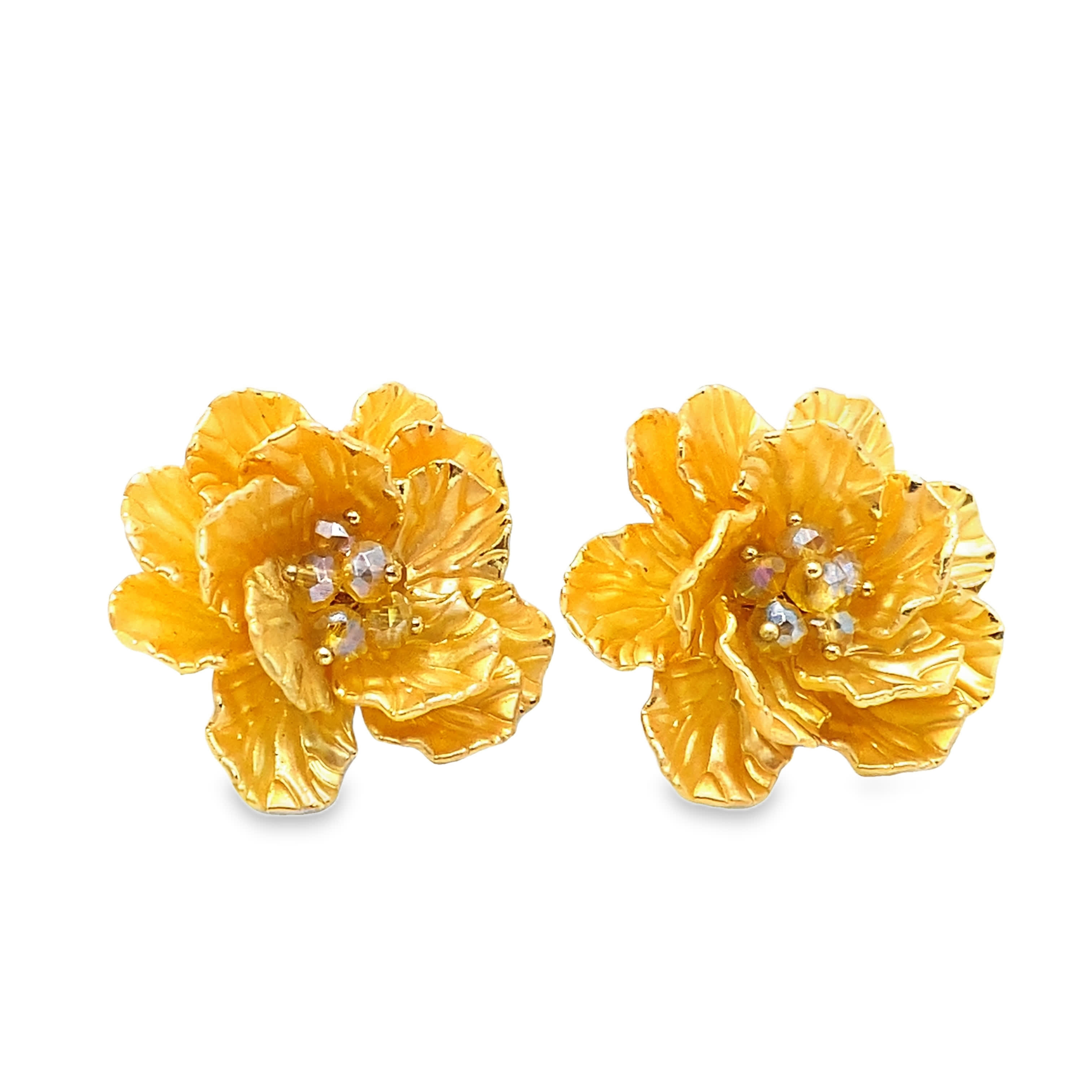 Kolczyki ze złoconej stali z motywem kwiatowym i kryształowymi akcentami