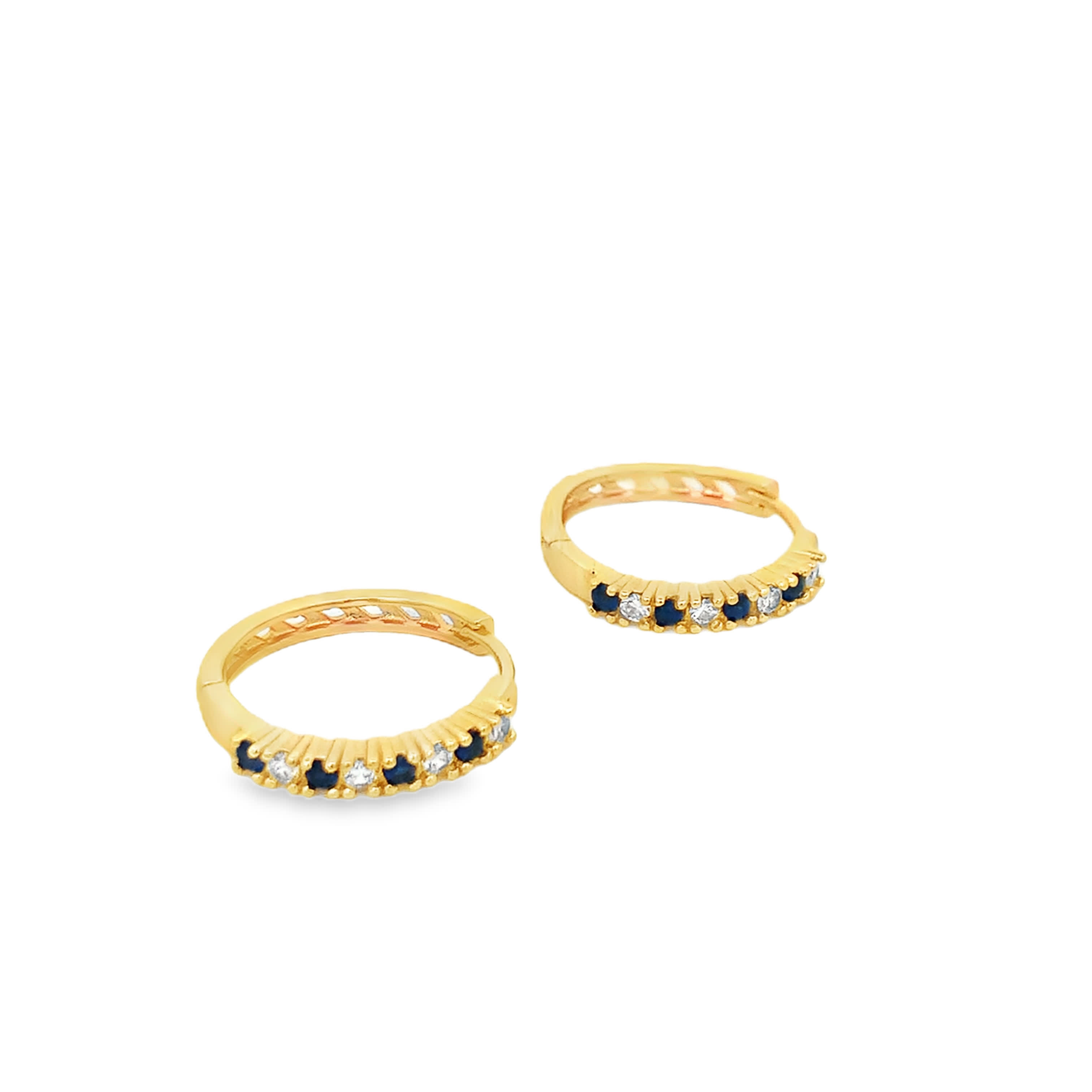 Kolczyki koła w kolorze żółtego złota z akcentami z głęboko niebieskiego szafiru