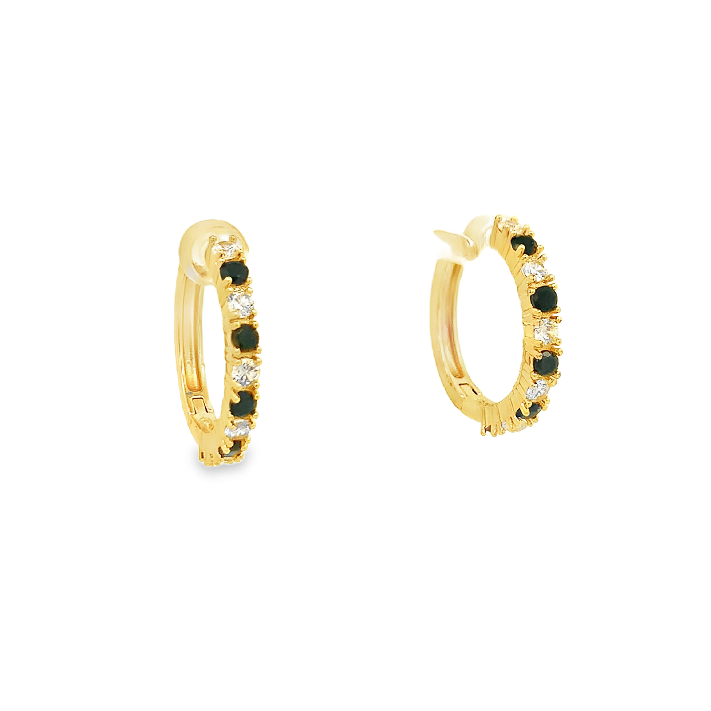 Kolczyki koła w kolorze żółtego złota z diamentami i akcentami onyksowymi
