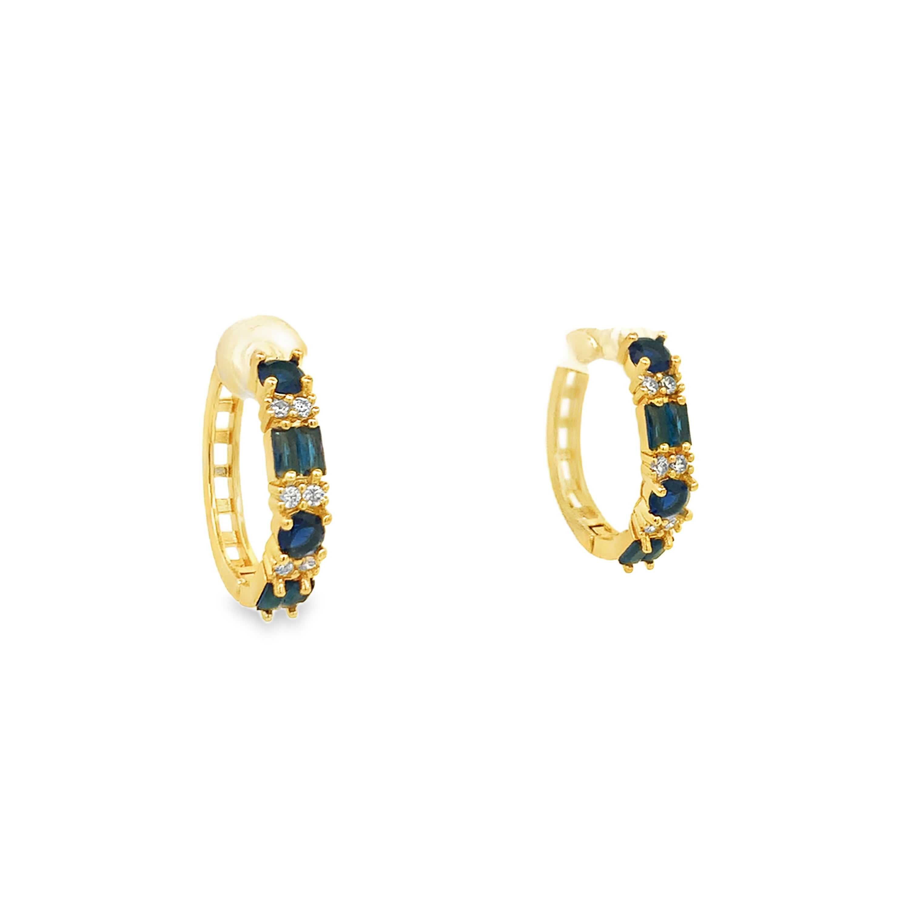 Kolczyki koła w kolorze żółtego złota z kamieniami szafirowymi o głębokim błękicie