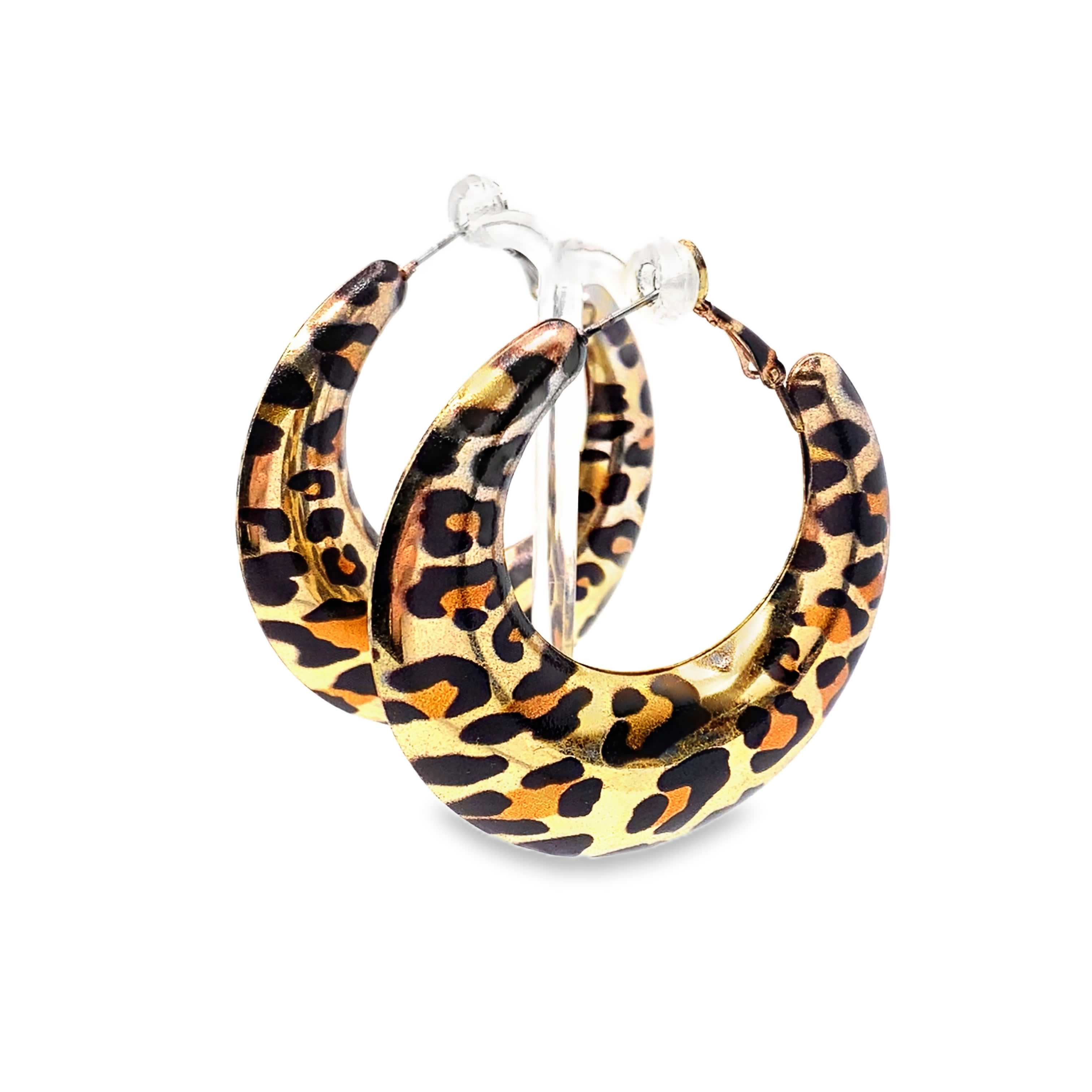 Kolczyki koła z nadrukiem zwierzęcym w odcieniu żółtego złota