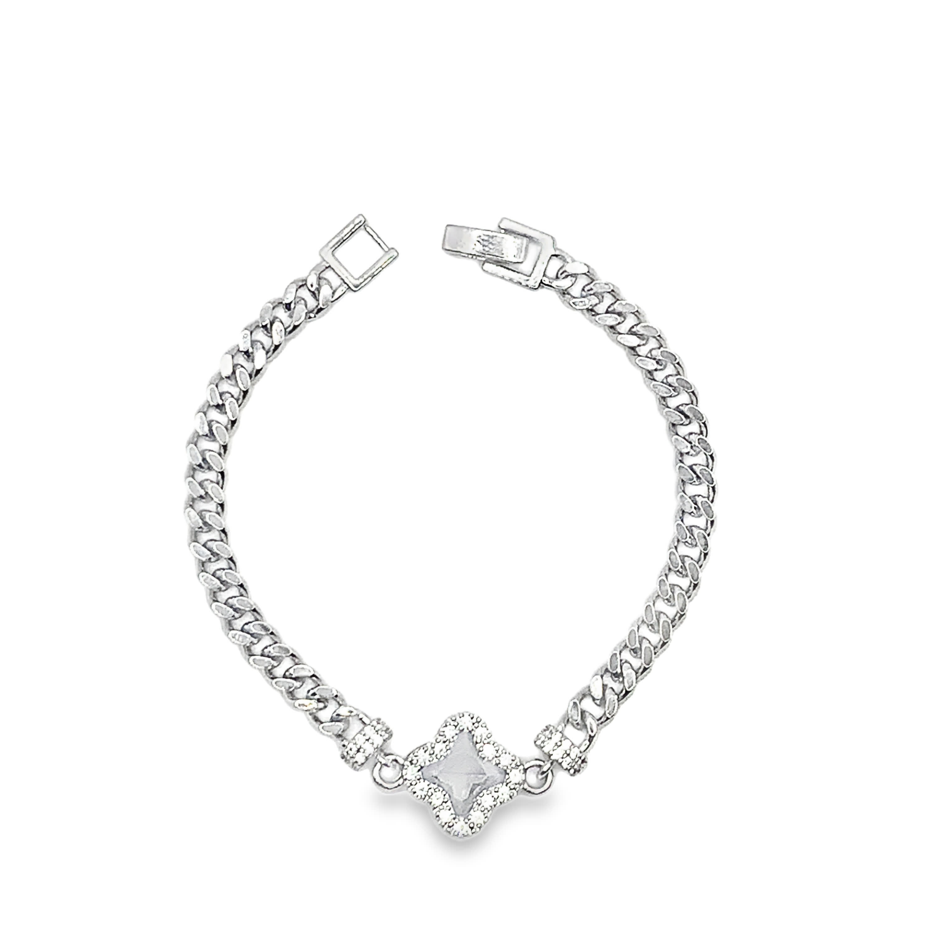Bransoletka z białego złota i srebra z okrągłym diamentem