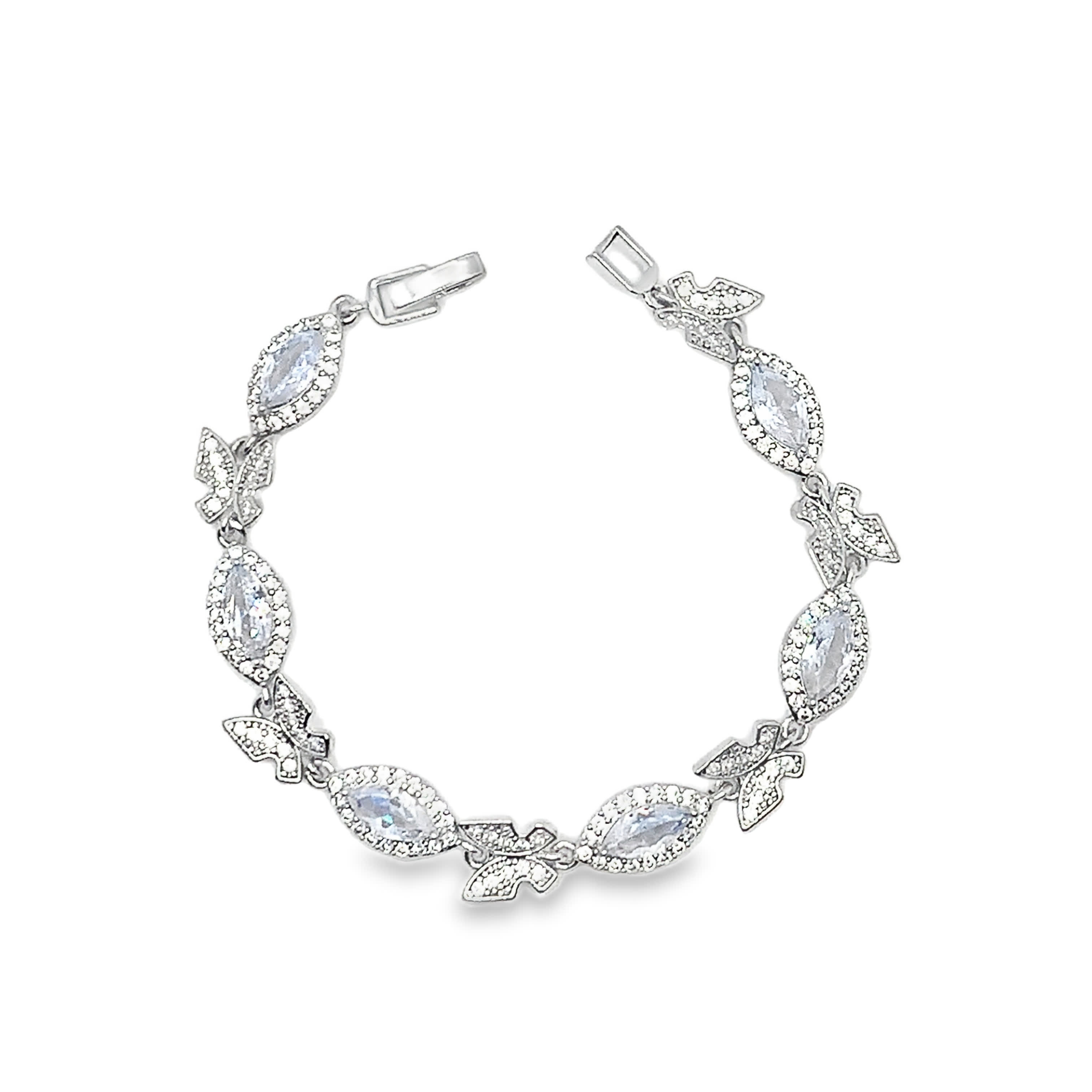Bransoletka z białego złota na łańcuszku ze srebra i diamentami o szlifie owalnym