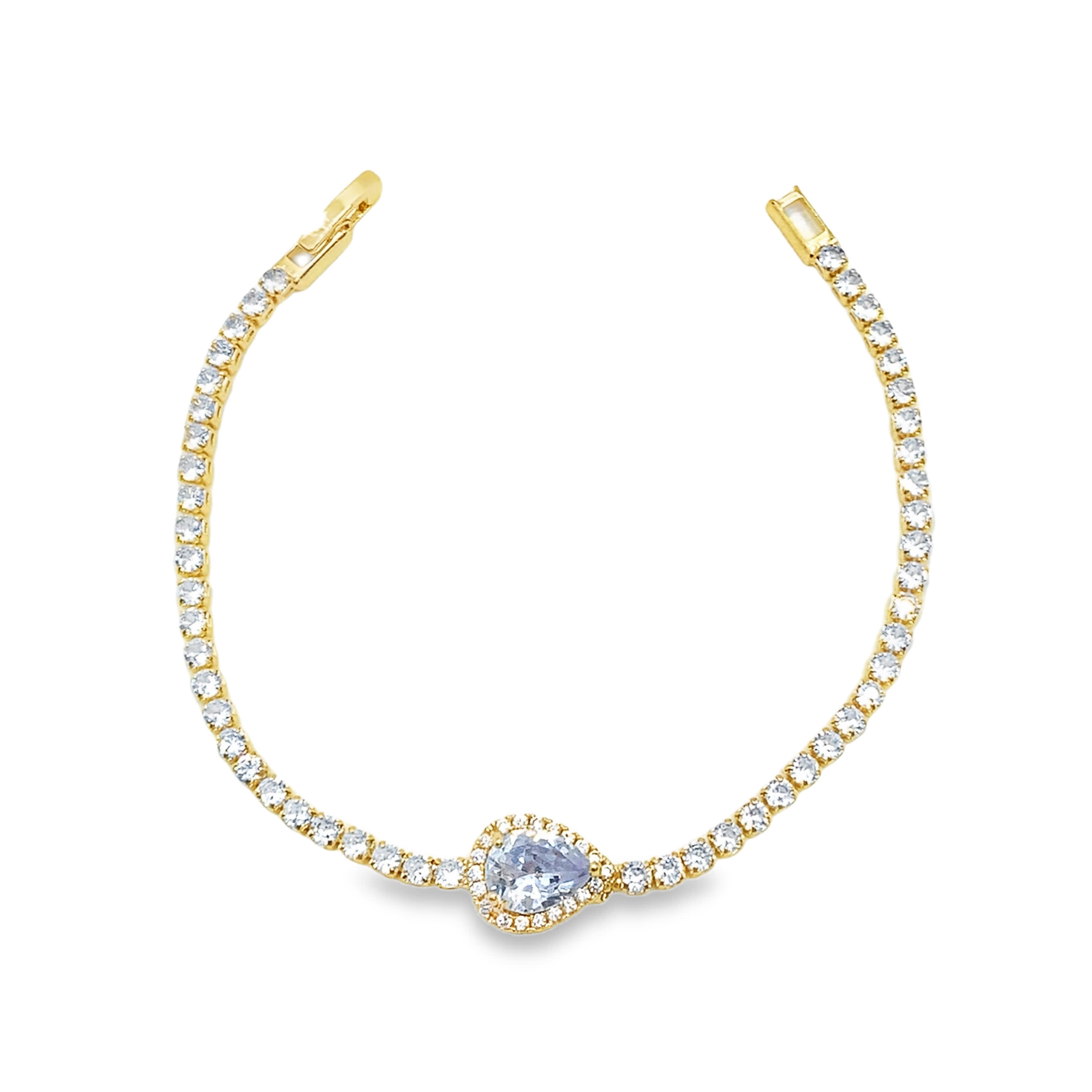Bransoletka tenisowa w kolorze żółtego złota z brylantem w kształcie gruszki