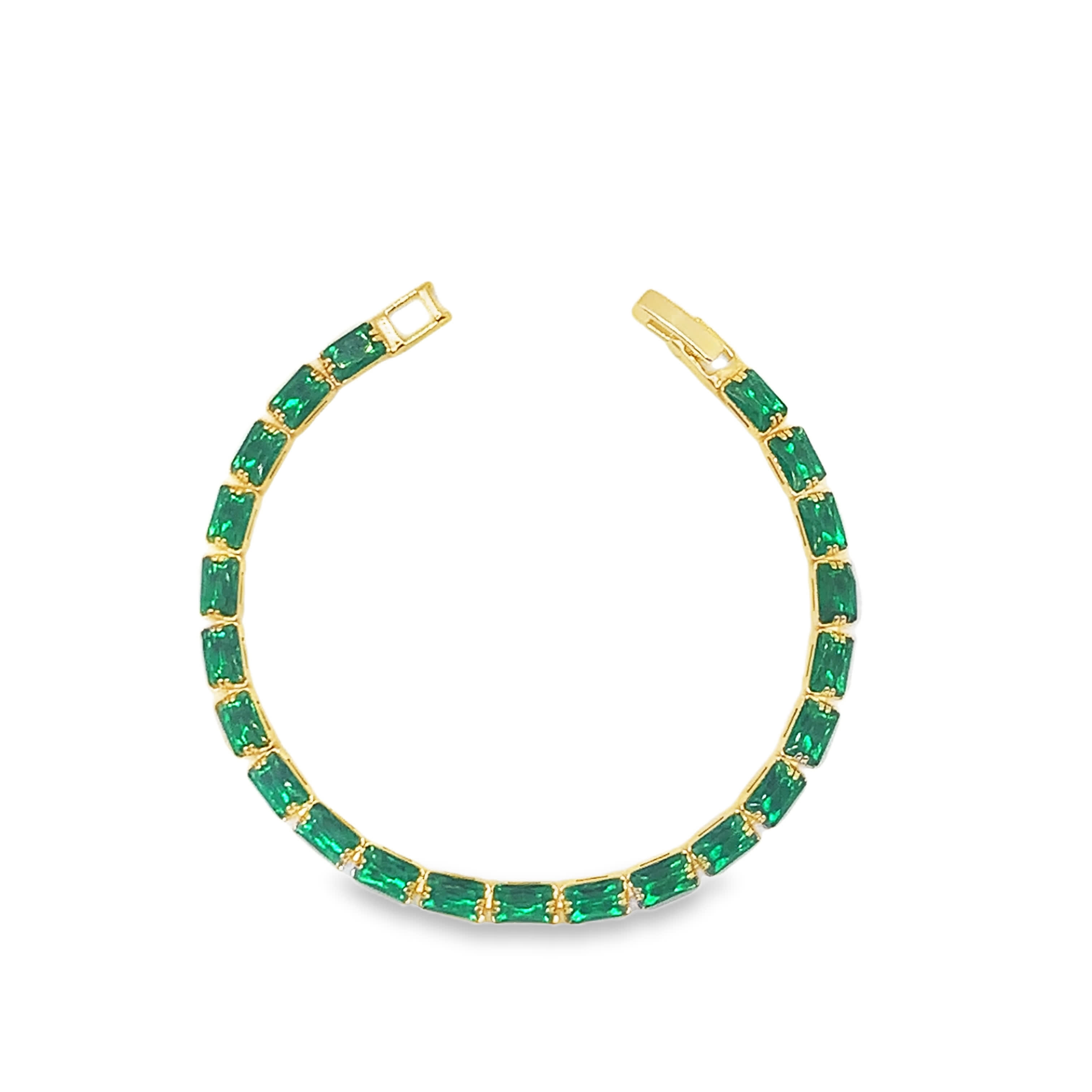 Bransoletka tenisowa w kolorze żółtego złota ze szmaragdem