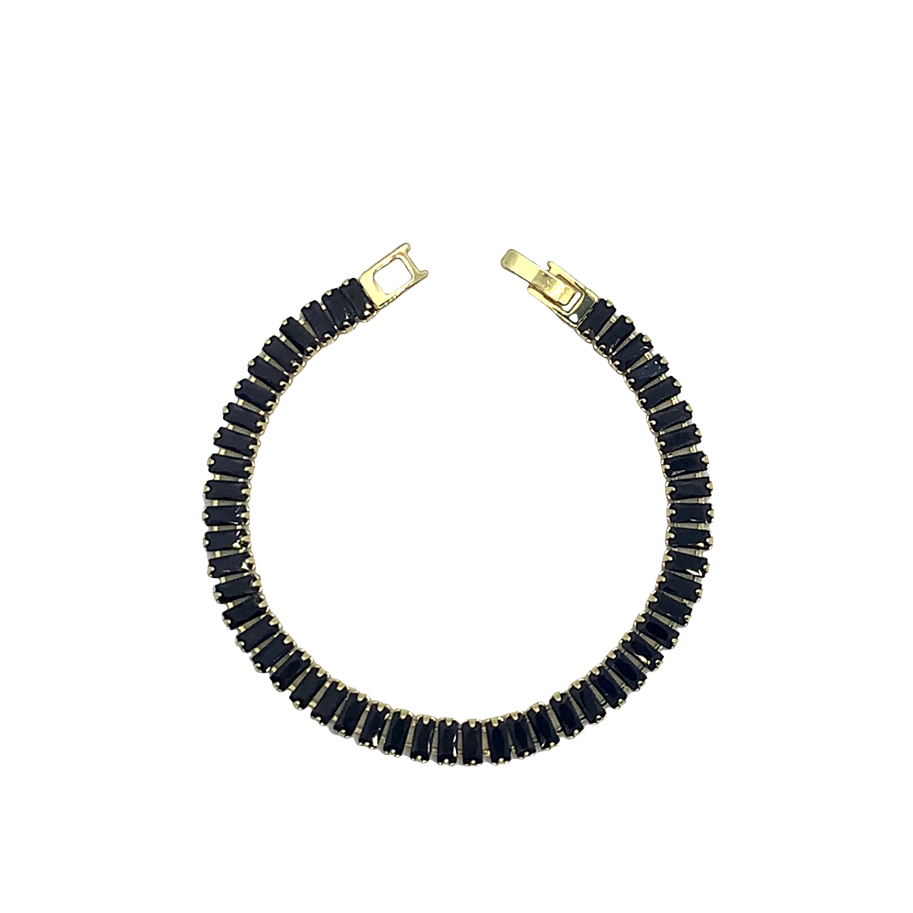 Bransoletka w kolorze żółtego złota z łańcuszkiem i onyksem o szlifie szmaragdowym