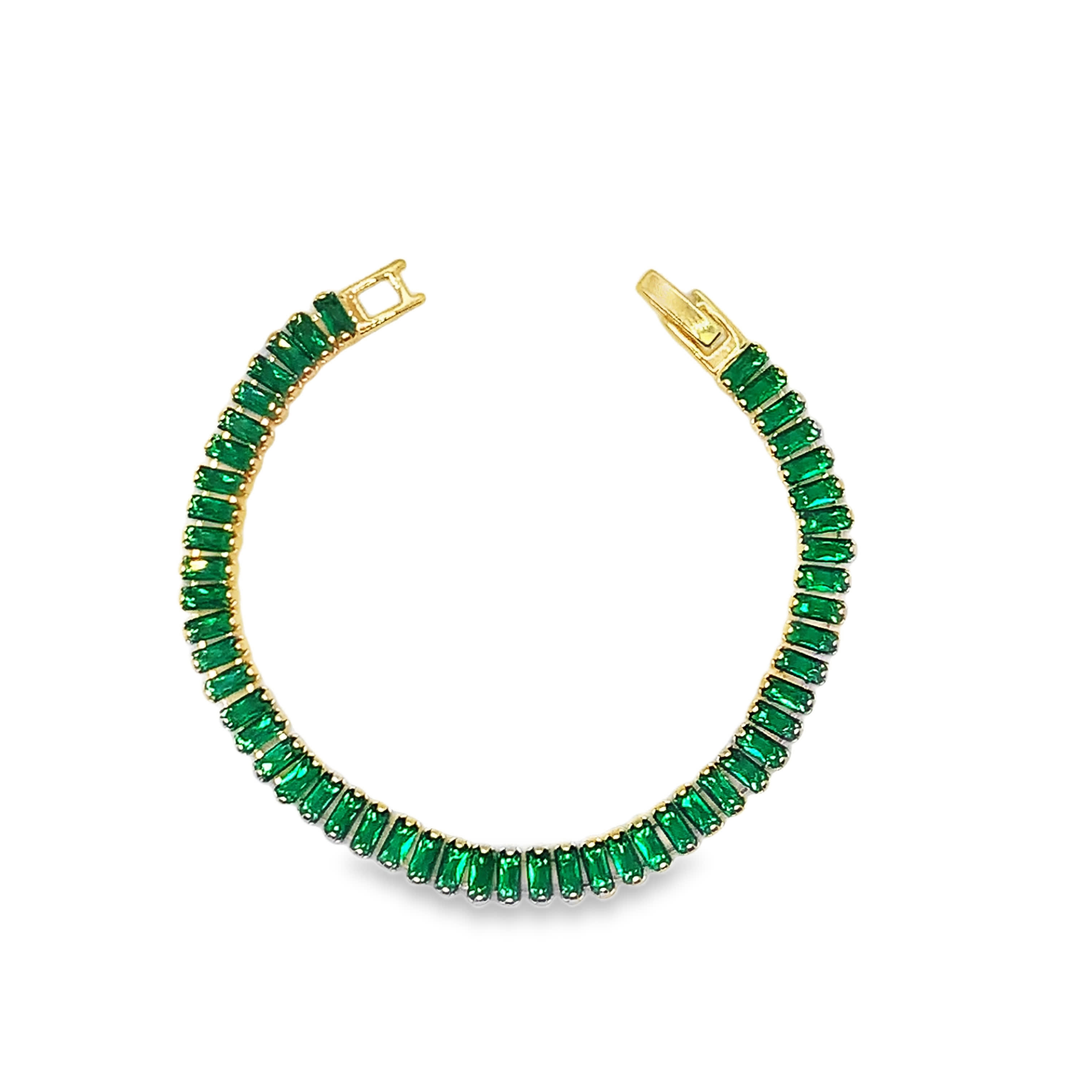 Bransoletka tenisowa w kolorze żółtego złota ze szmaragdem