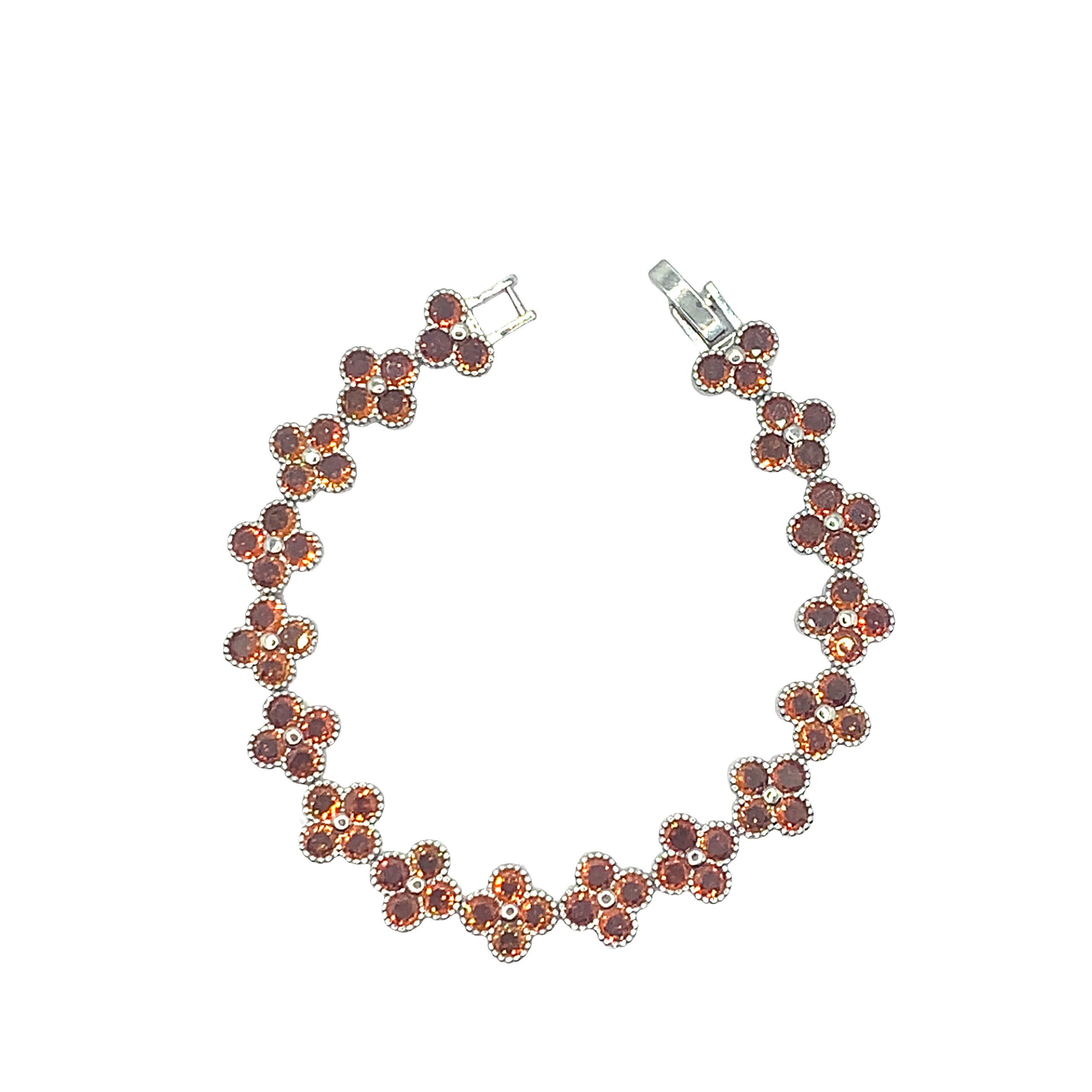 Bransoletka z białego złota z łańcuszkiem i czerwonymi granatami