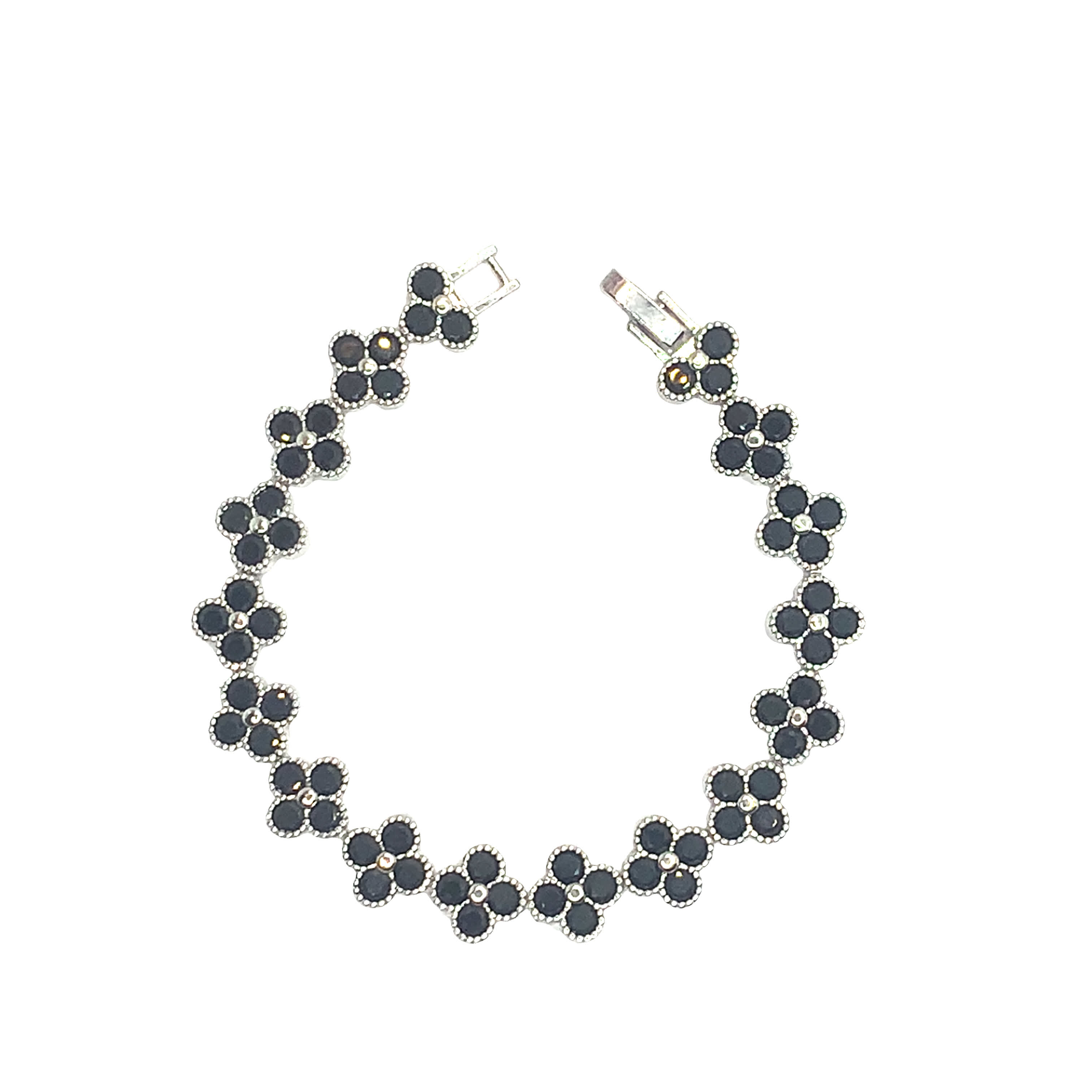 Bransoletka z łańcuszka w kolorze srebrnym z okrągłymi kaboszonami z onyksu