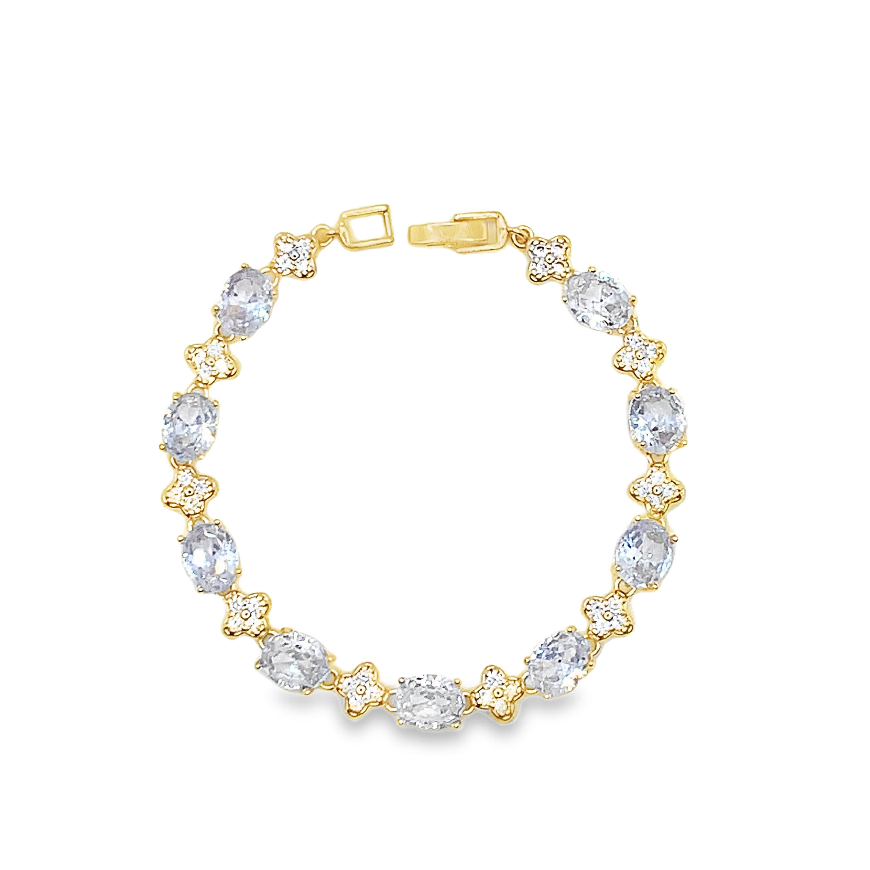 Bransoletka tenisowa w kolorze żółtego złota z diamentami o szlifie owalnym