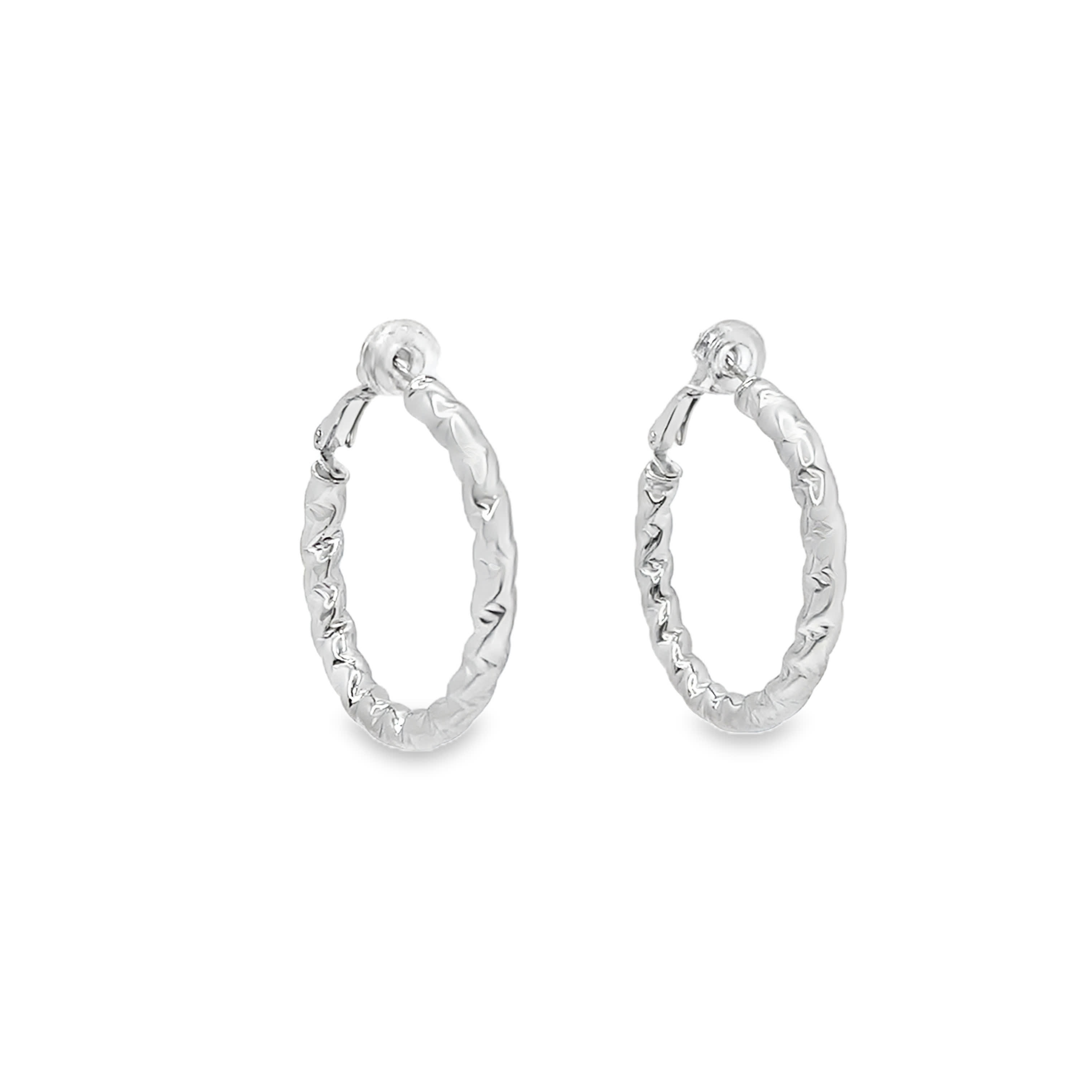 Teksturowane kolczyki koła ze srebra w wykończeniu z białego złota