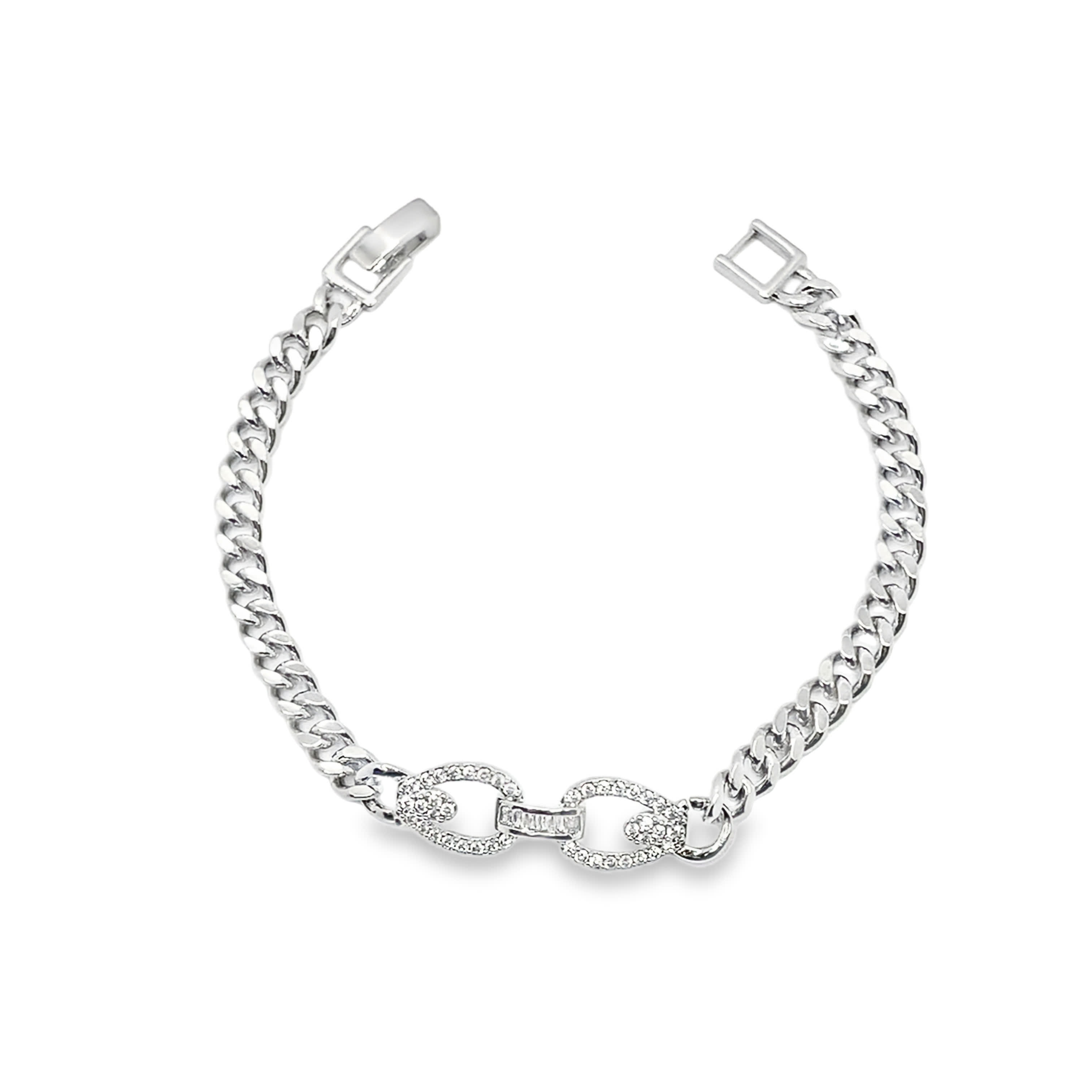 Elegancka bransoletka z białego złota z łańcuszkiem i brylantami