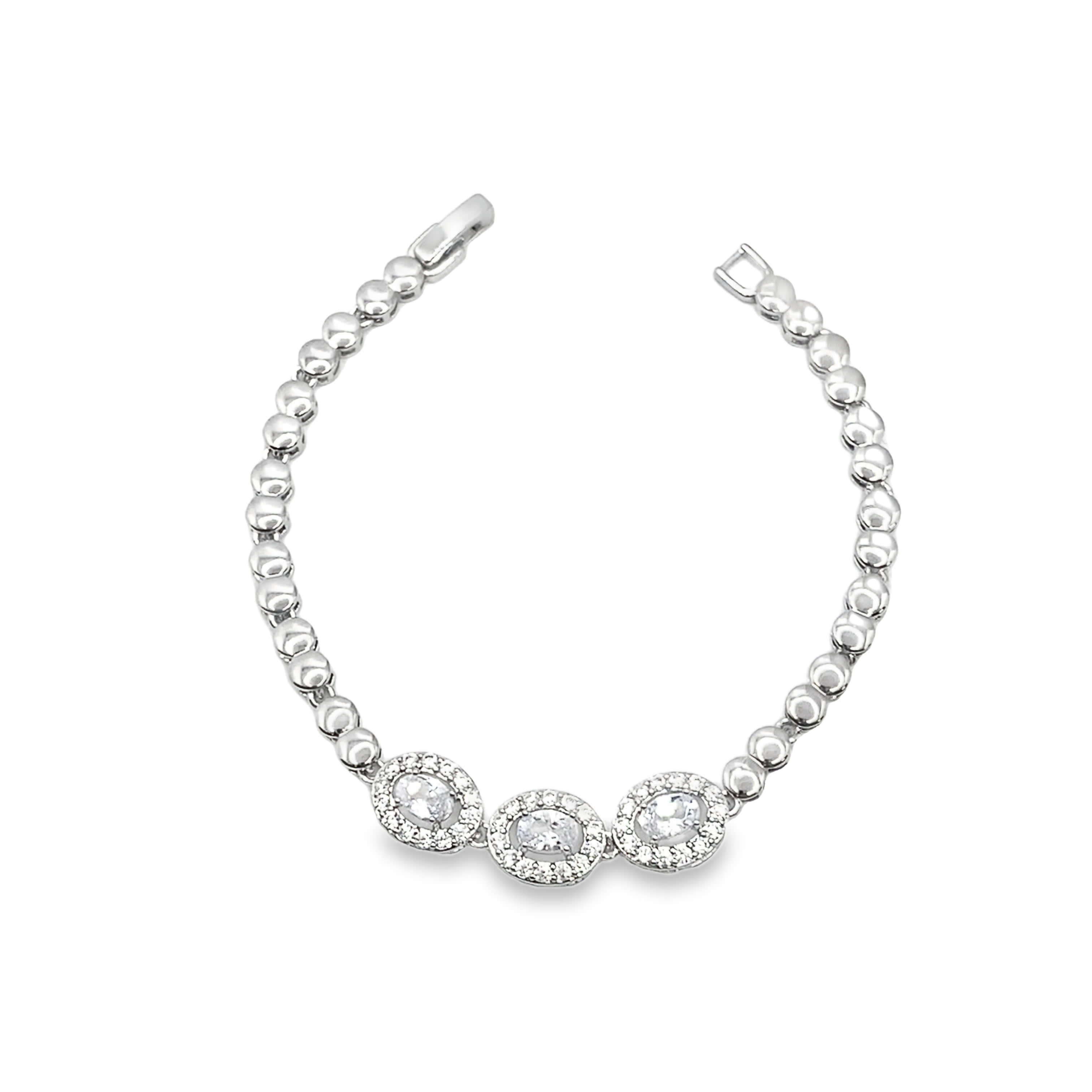 Elegancka srebrna bransoletka łańcuszkowa z diamentami o szlifie owalnym