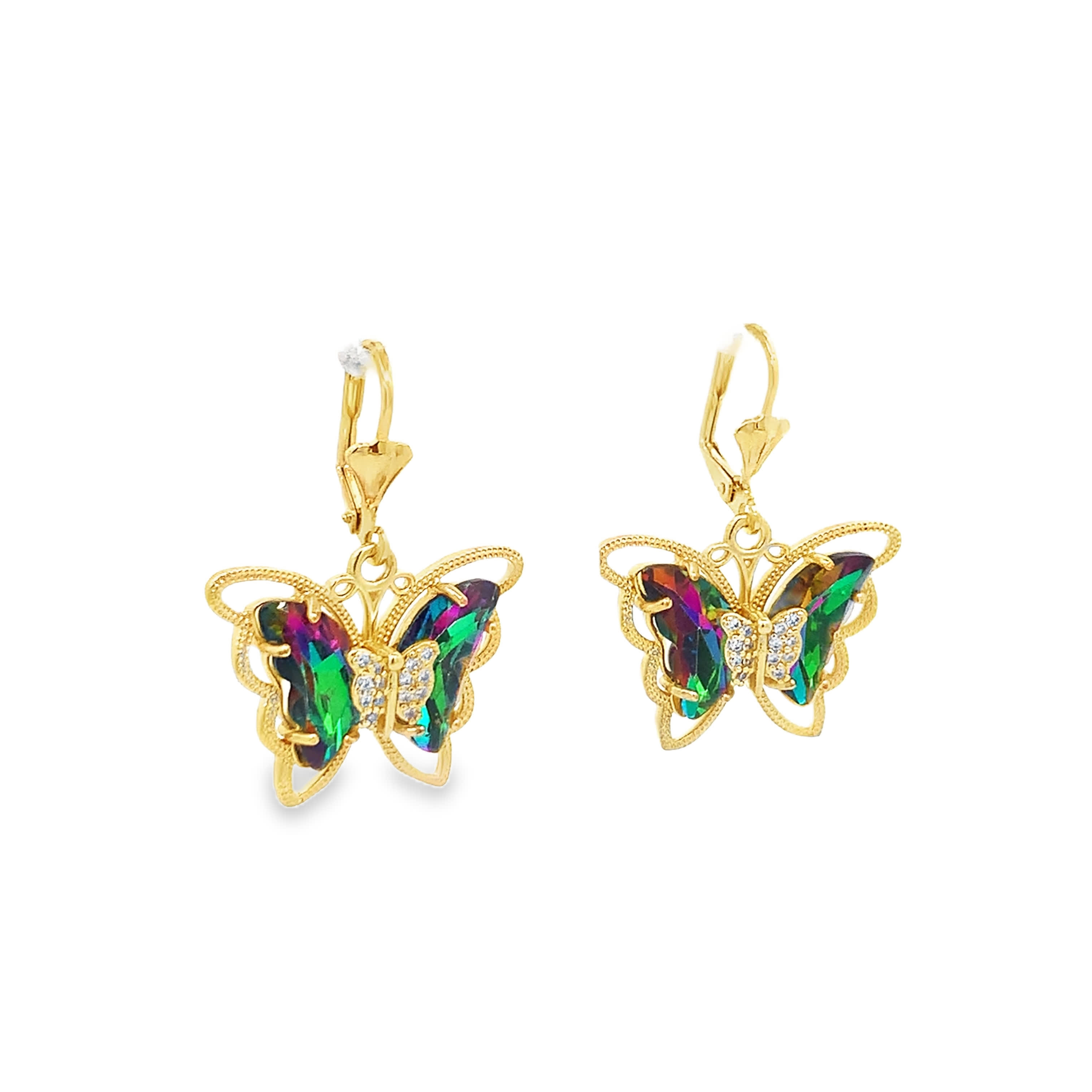Kolczyki wiszące w kolorze żółtego złota z owalnym zielonym kryształem