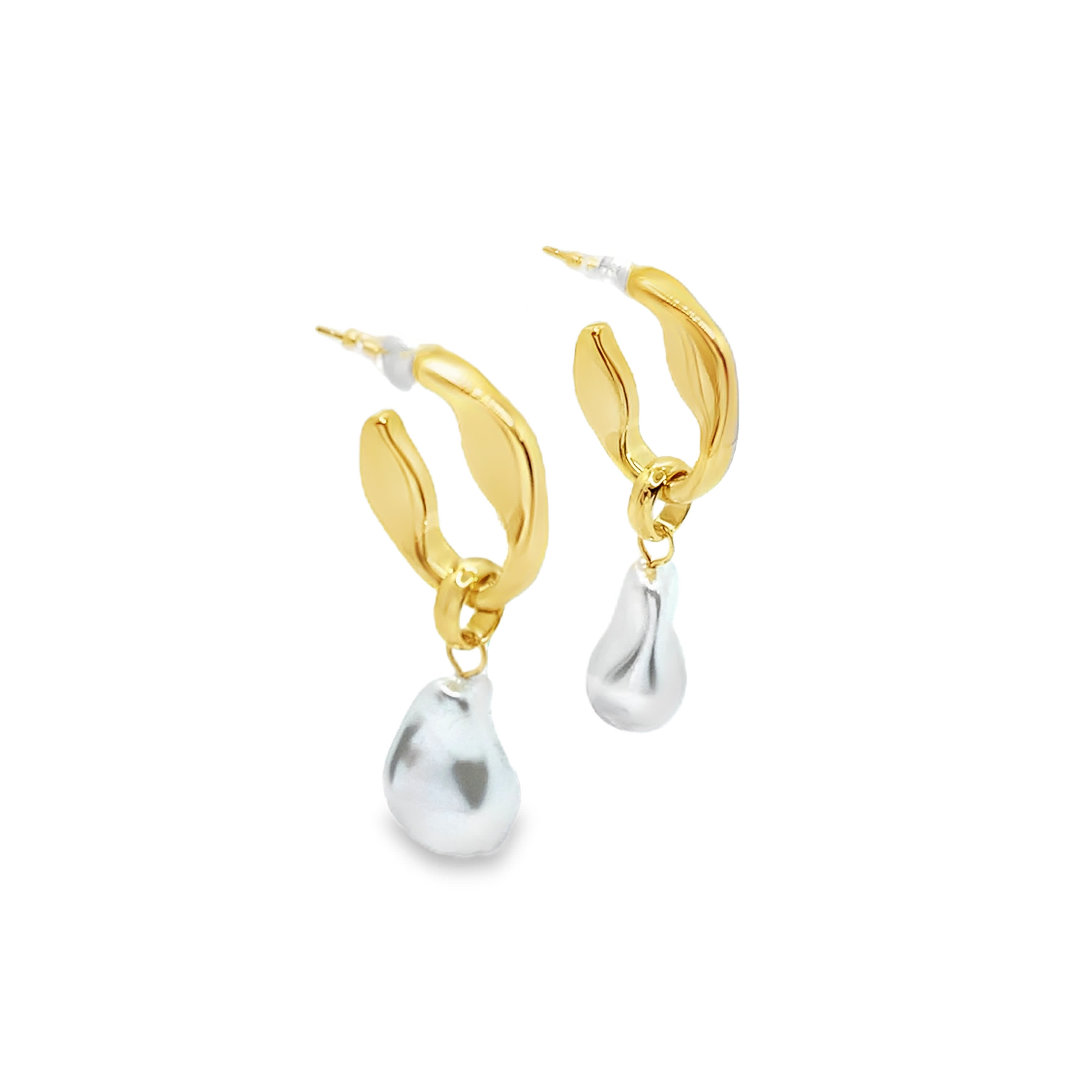 Kolczyki wiszące w kolorze żółtego złota z perłami barokowymi
