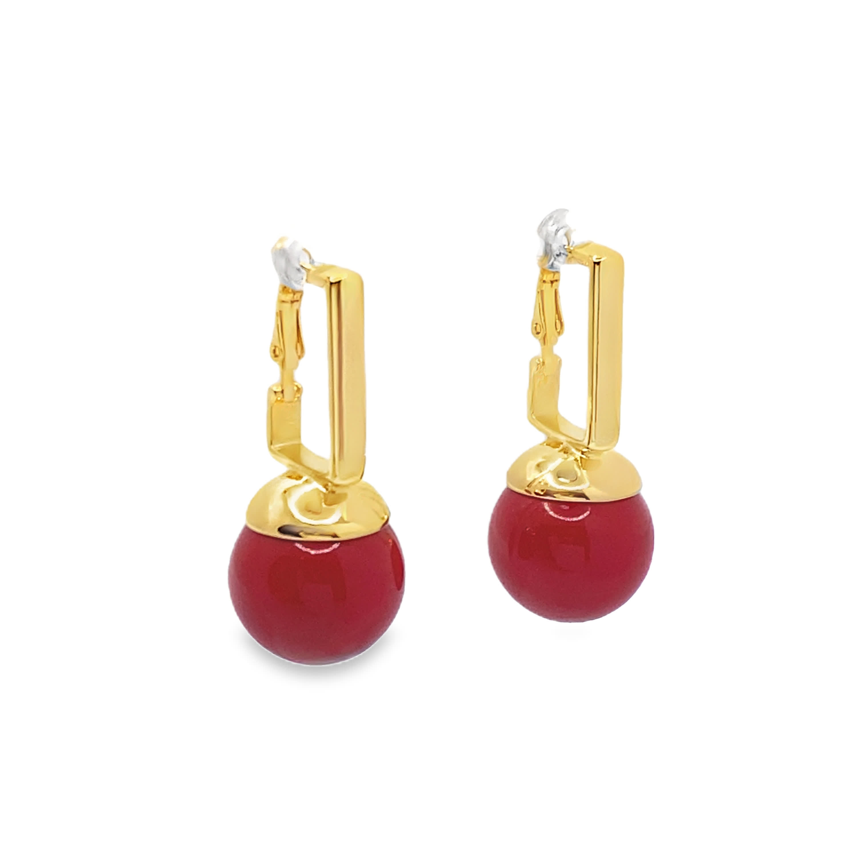 Kolczyki w kolorze żółtego złota z kaboszonami z czerwonego korala