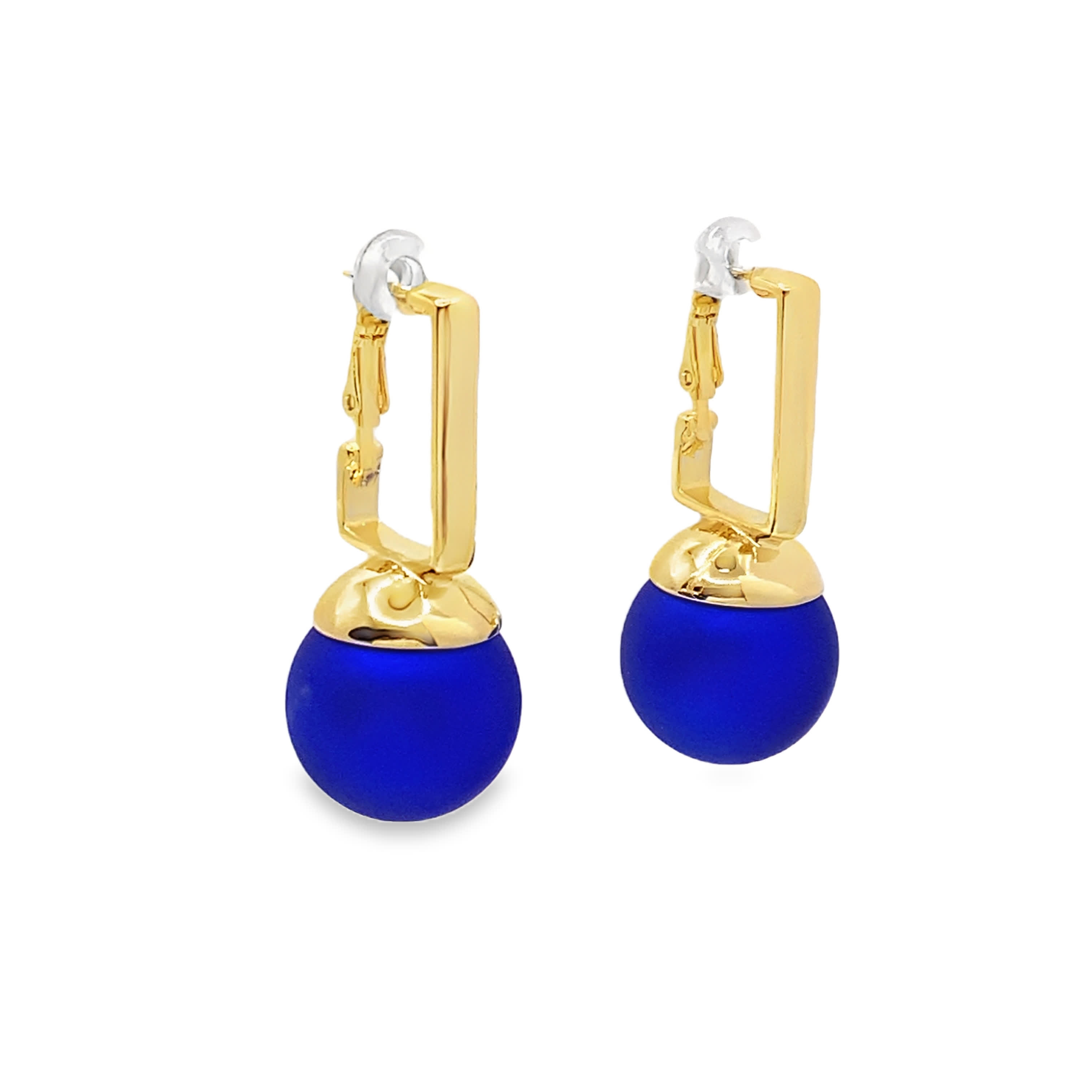 Kolczyki w kolorze żółtego złota z kaboszonami z królewskiego niebieskiego szafiru