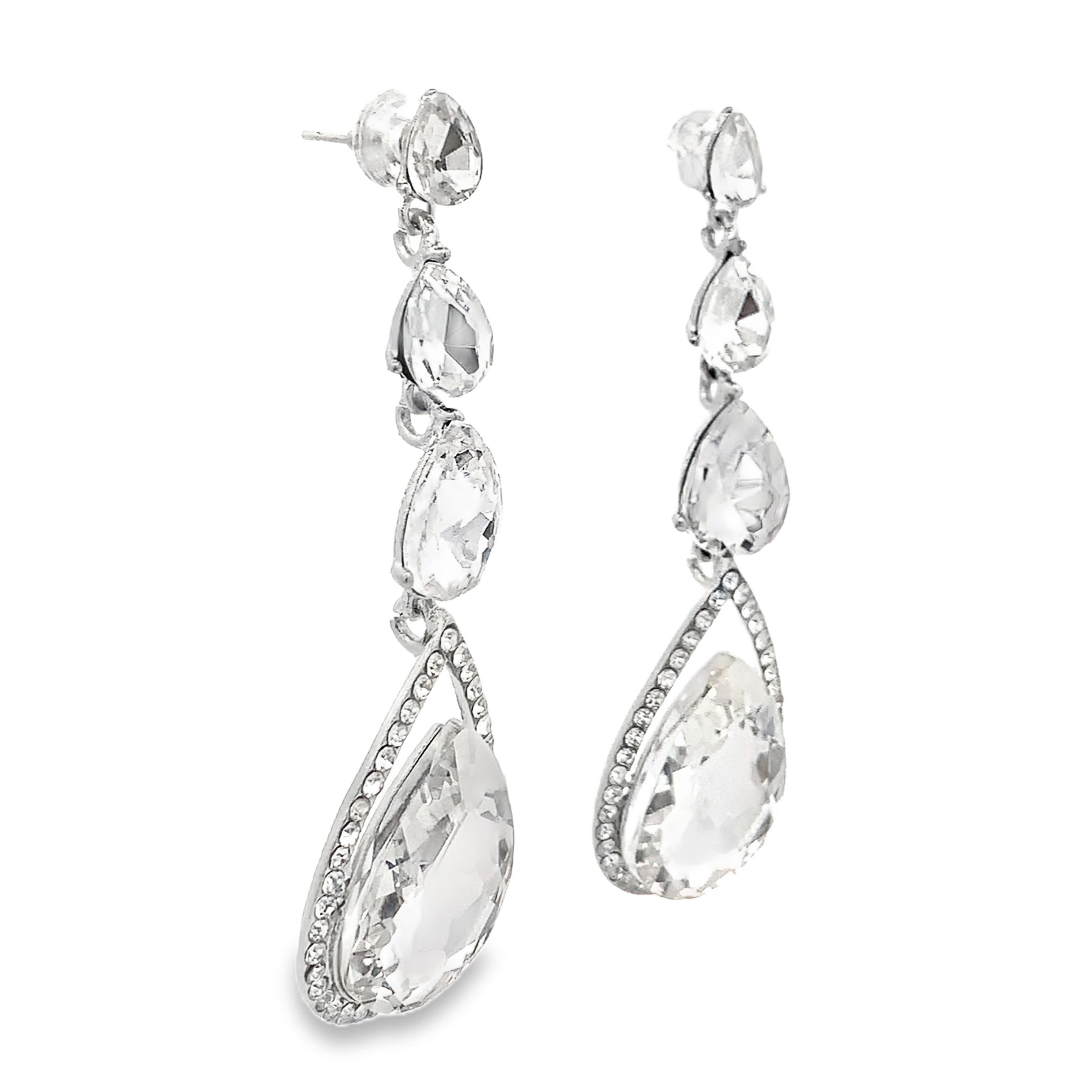 Eleganckie srebrne wiszące kolczyki z kryształkami w kształcie gruszki