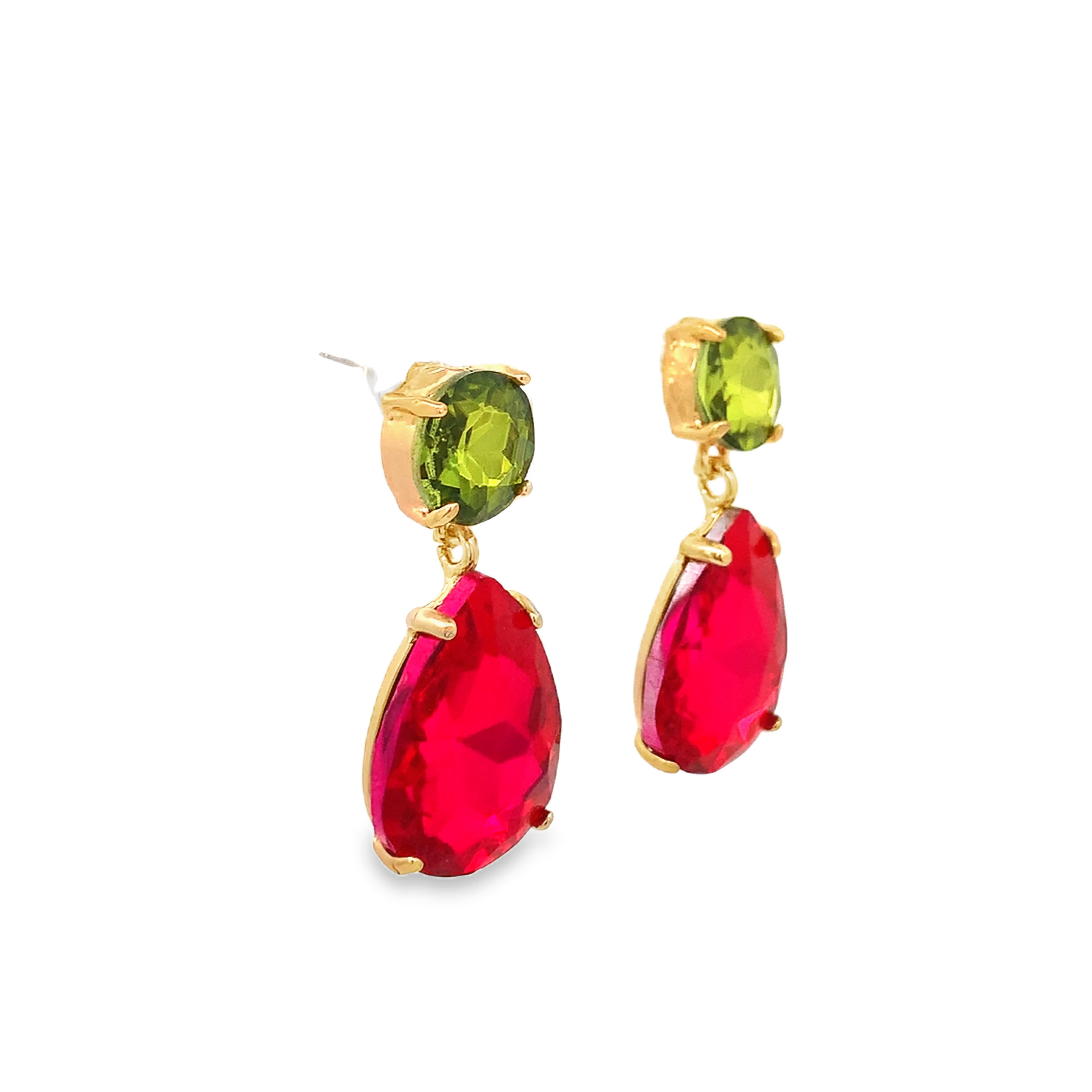 Kolczyki w kolorze żółtego złota z okrągłym kaboszonem perydotu