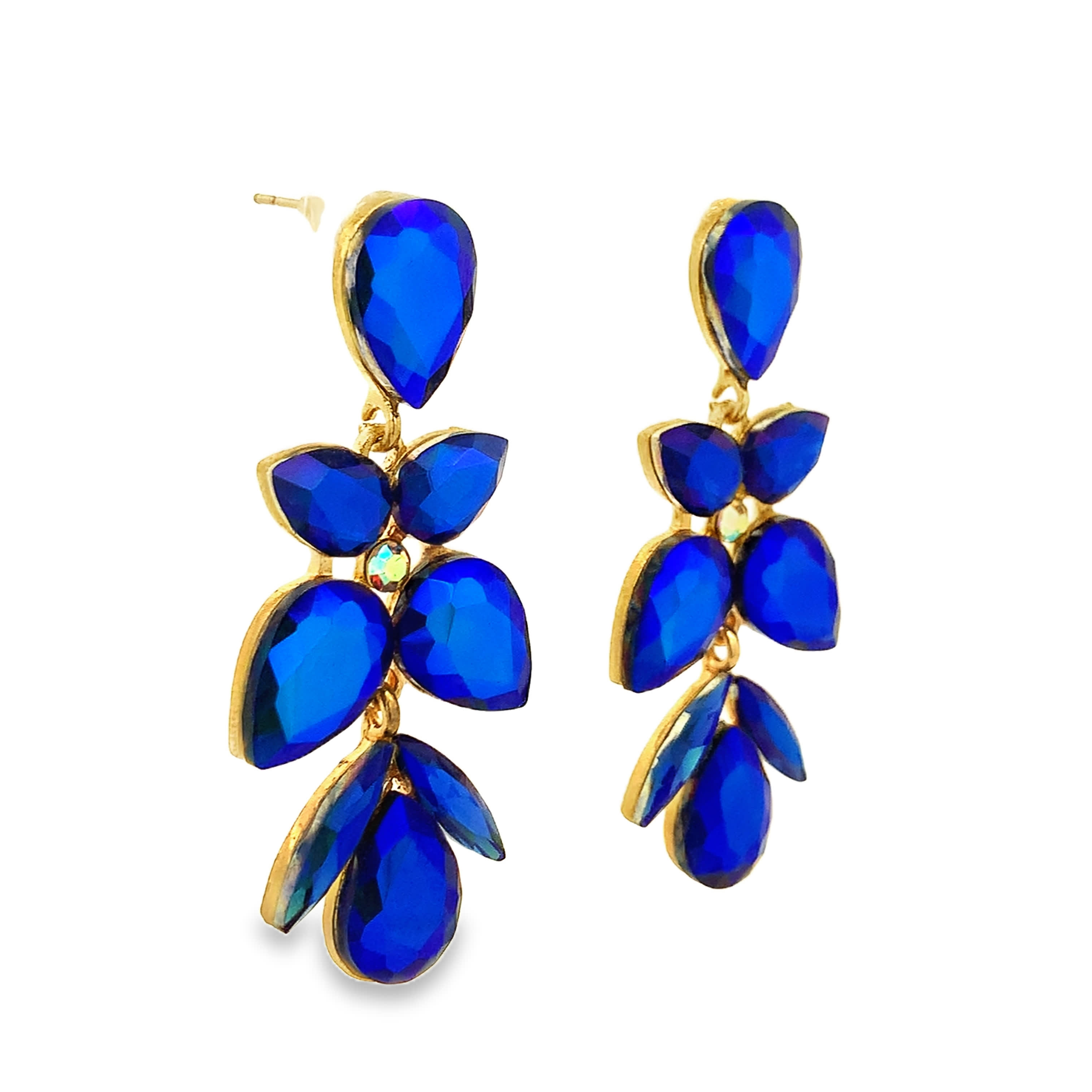 Kolczyki wiszące w kolorze żółtego złota z niebieskimi kryształowymi gruszkami
