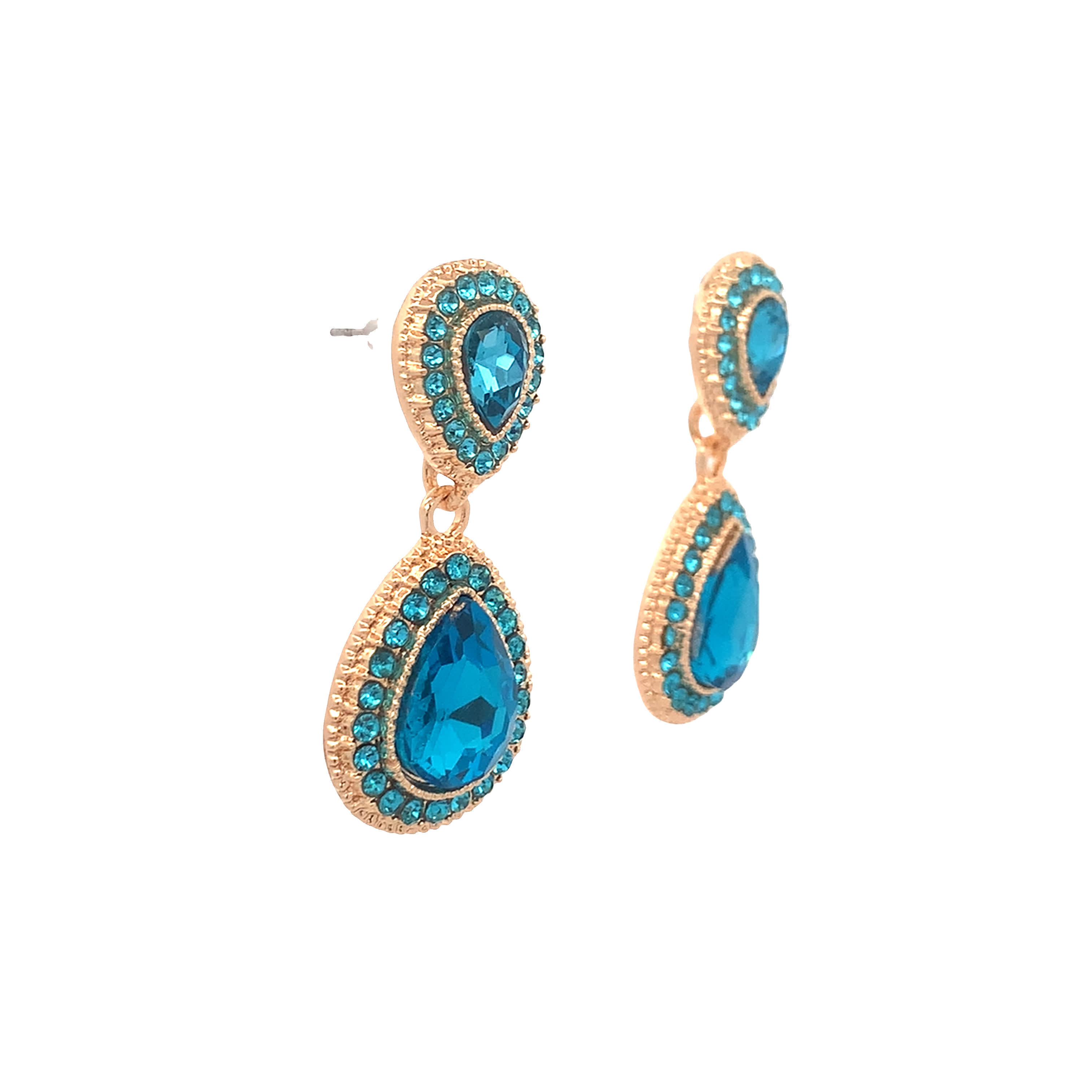 Kolczyki w kolorze żółtego złota z niebieskim kryształem w kształcie gruszki