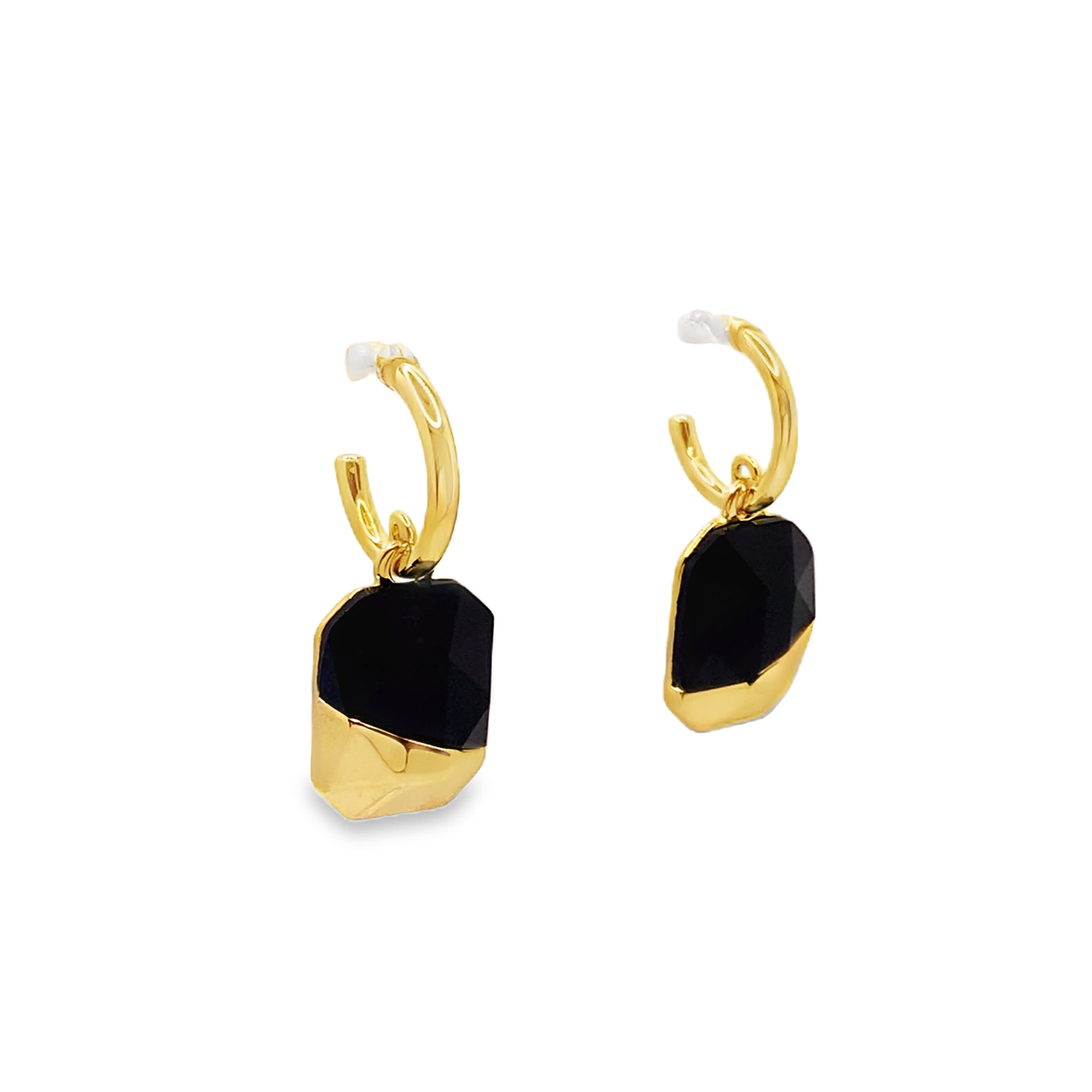 Kolczyki wiszące w kolorze żółtego złota z ośmiokątnymi kaboszonami onyksu