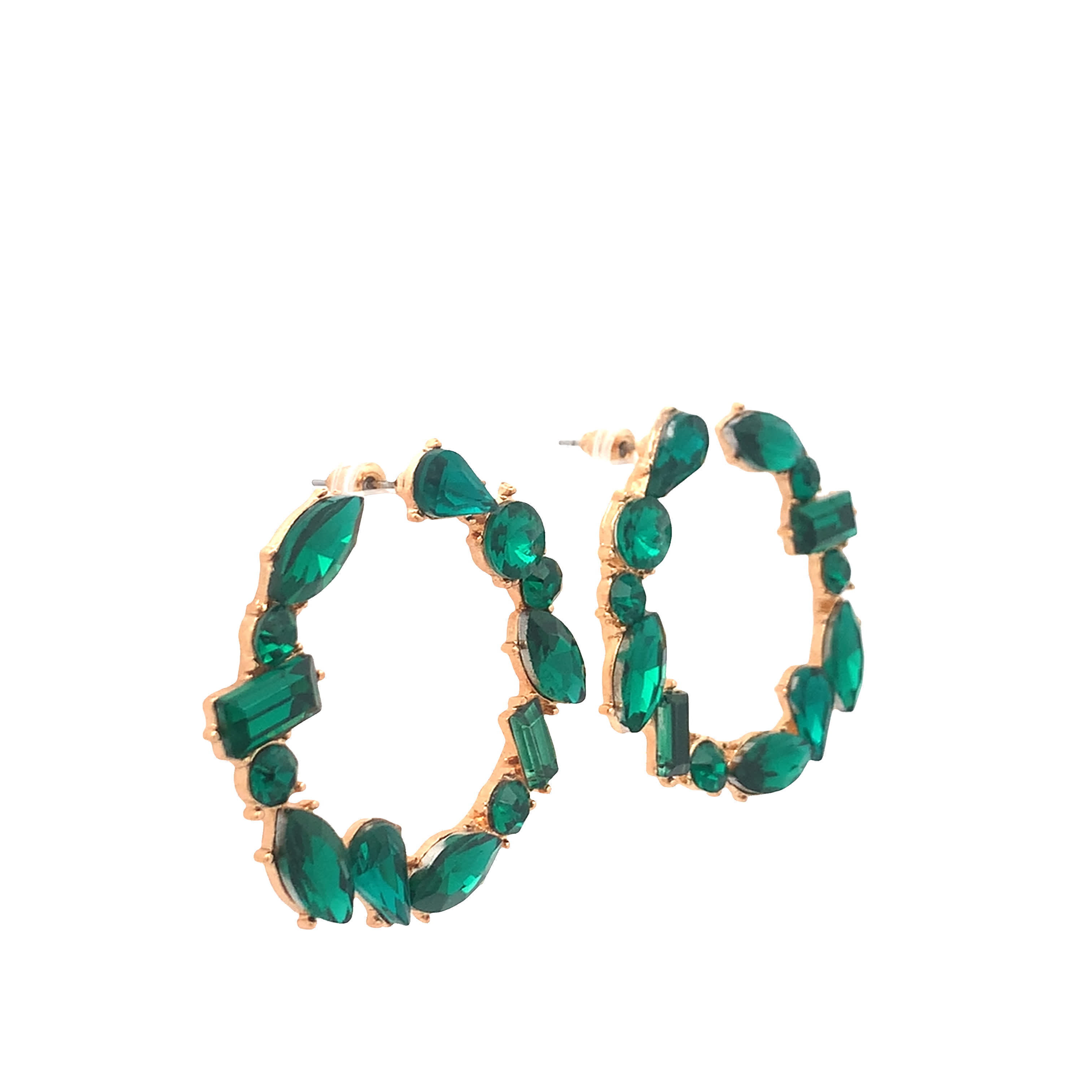 Kolczyki koła w kolorze żółtego złota z okrągłymi szmaragdami w kształcie kaboszonu
