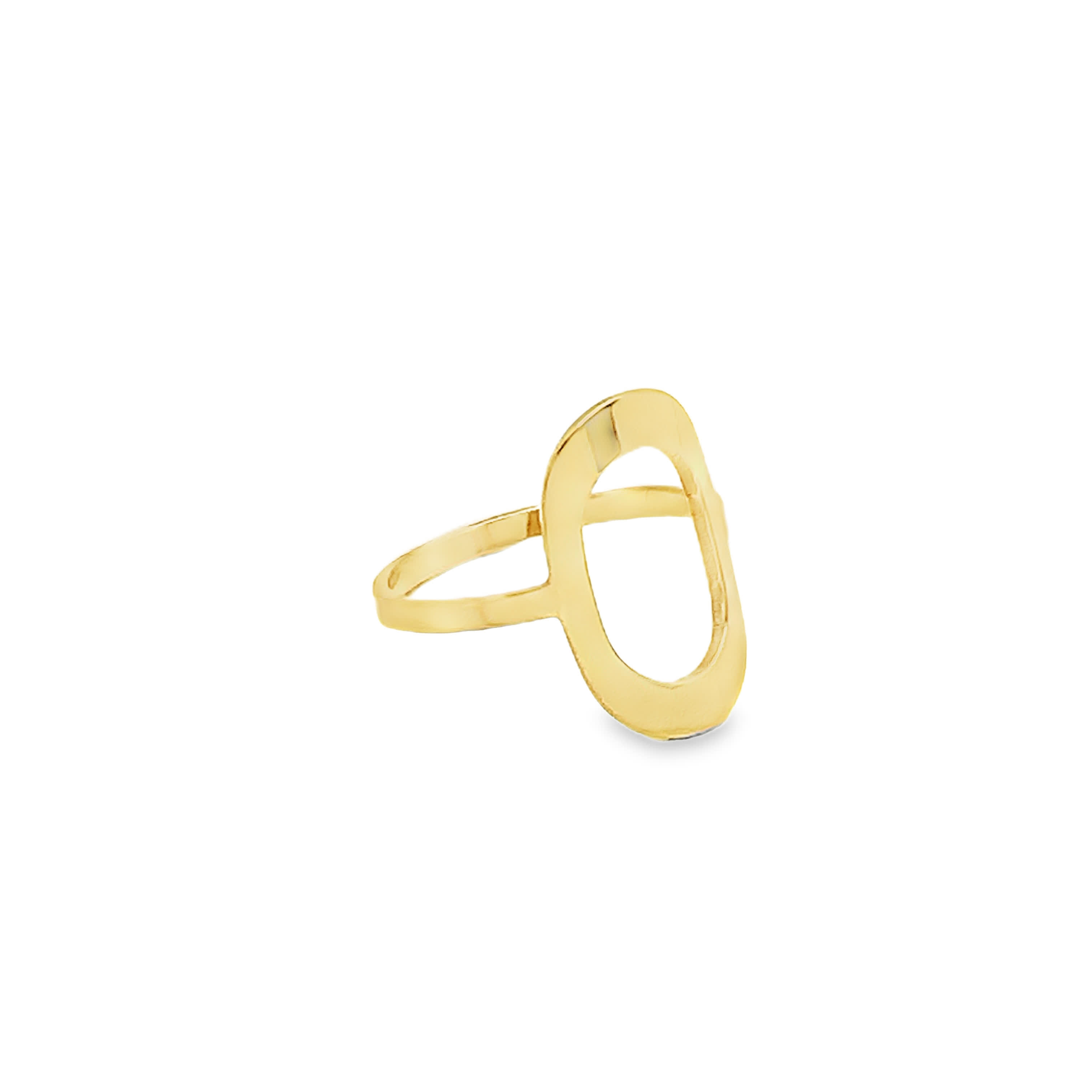 Modernistyczny otwarty owalny pierścień w kolorze żółtego złota