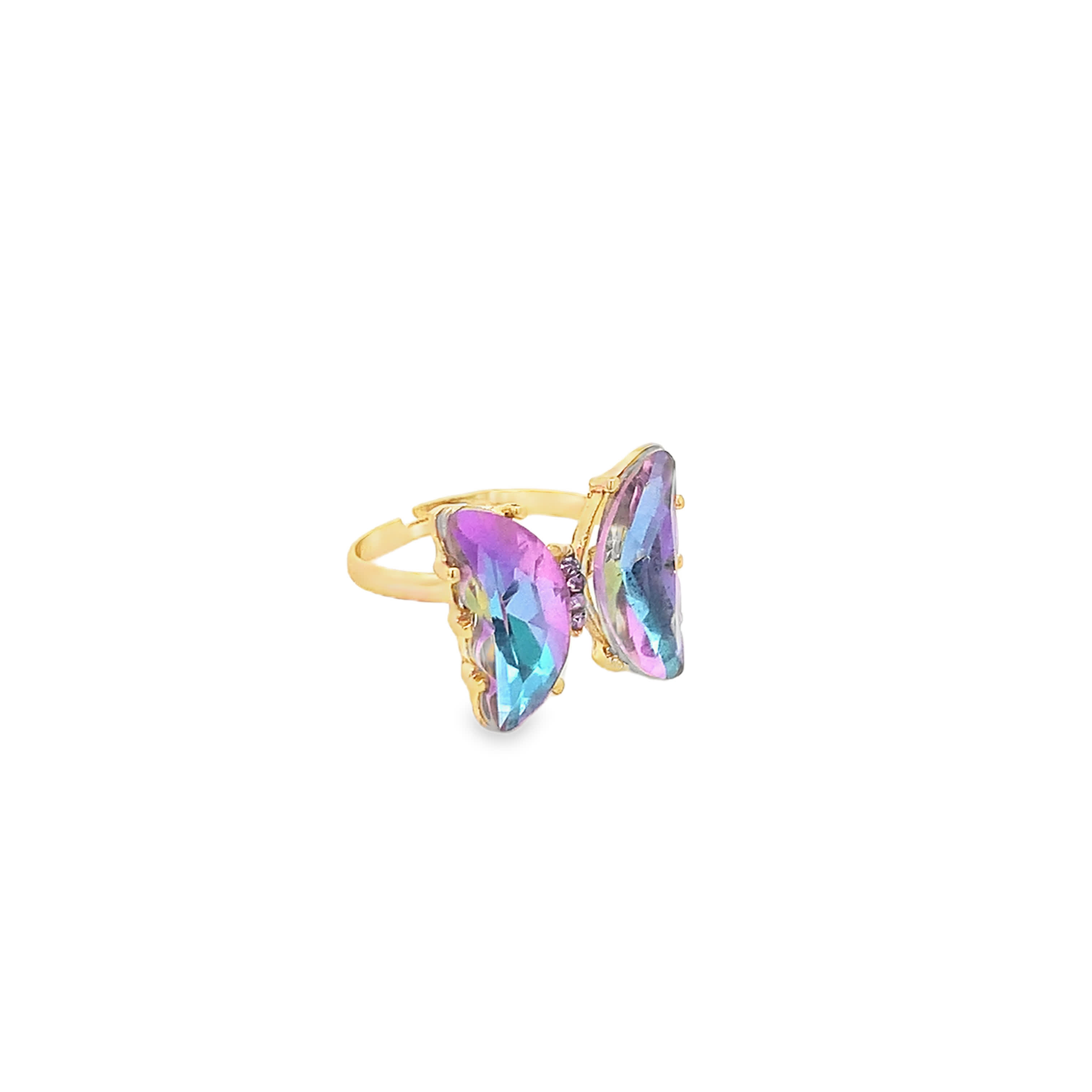 Pierścionek koktajlowy w kolorze żółtego złota z niebiesko-fioletowym kryształem