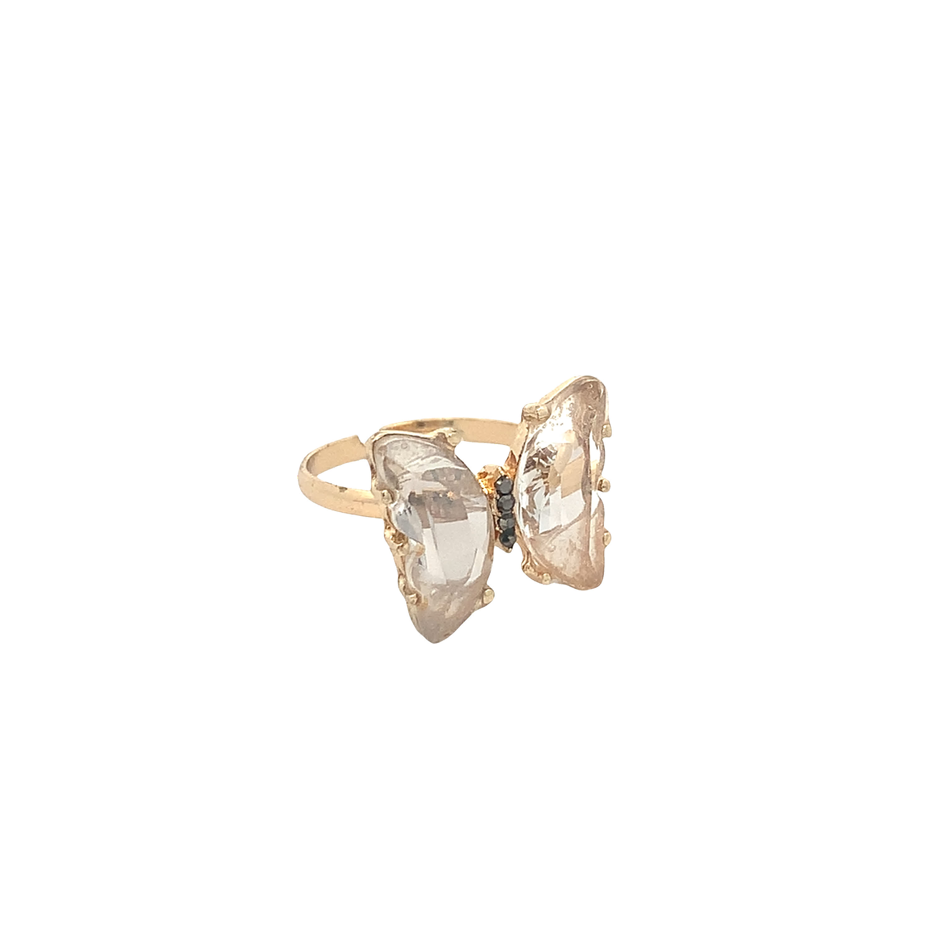 Pierścionek koktajlowy w kolorze żółtego złota z szlifowanym kryształem