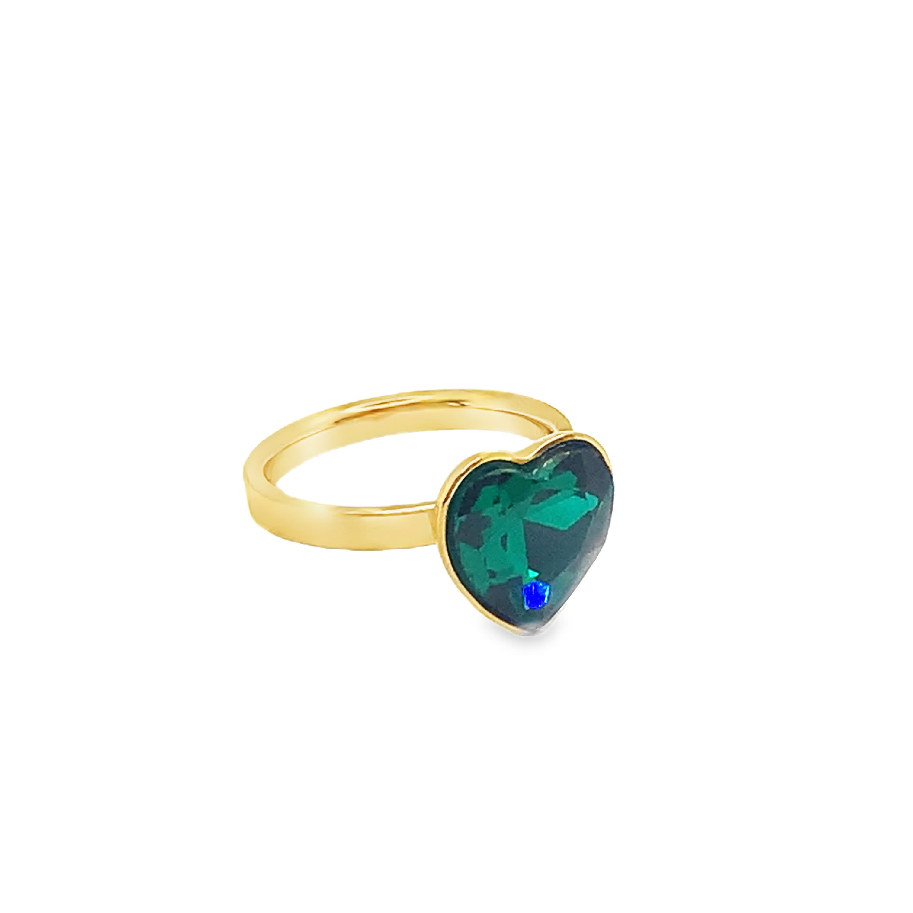Pierścionek z szmaragdem w kształcie serca, wykonany w kolorze żółtego złota