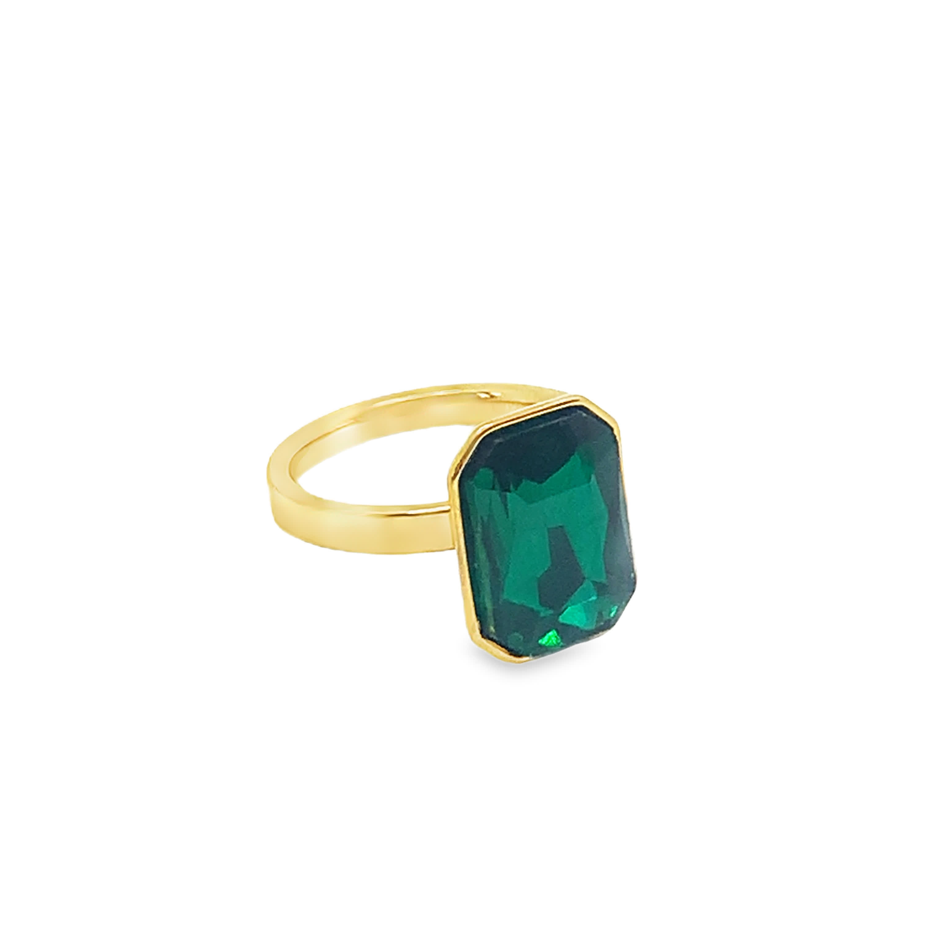 Pierścionek koktajlowy w kolorze żółtego złota ze szmaragdem szlifowanym
