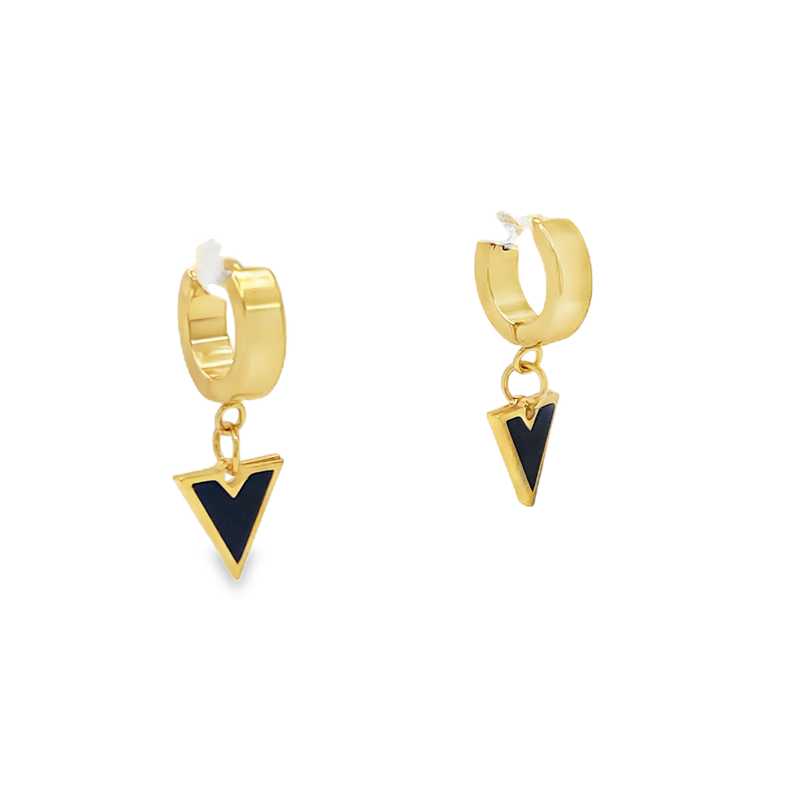 Eleganckie kolczyki koła w kolorze żółtego złota z trójkątną zawieszką