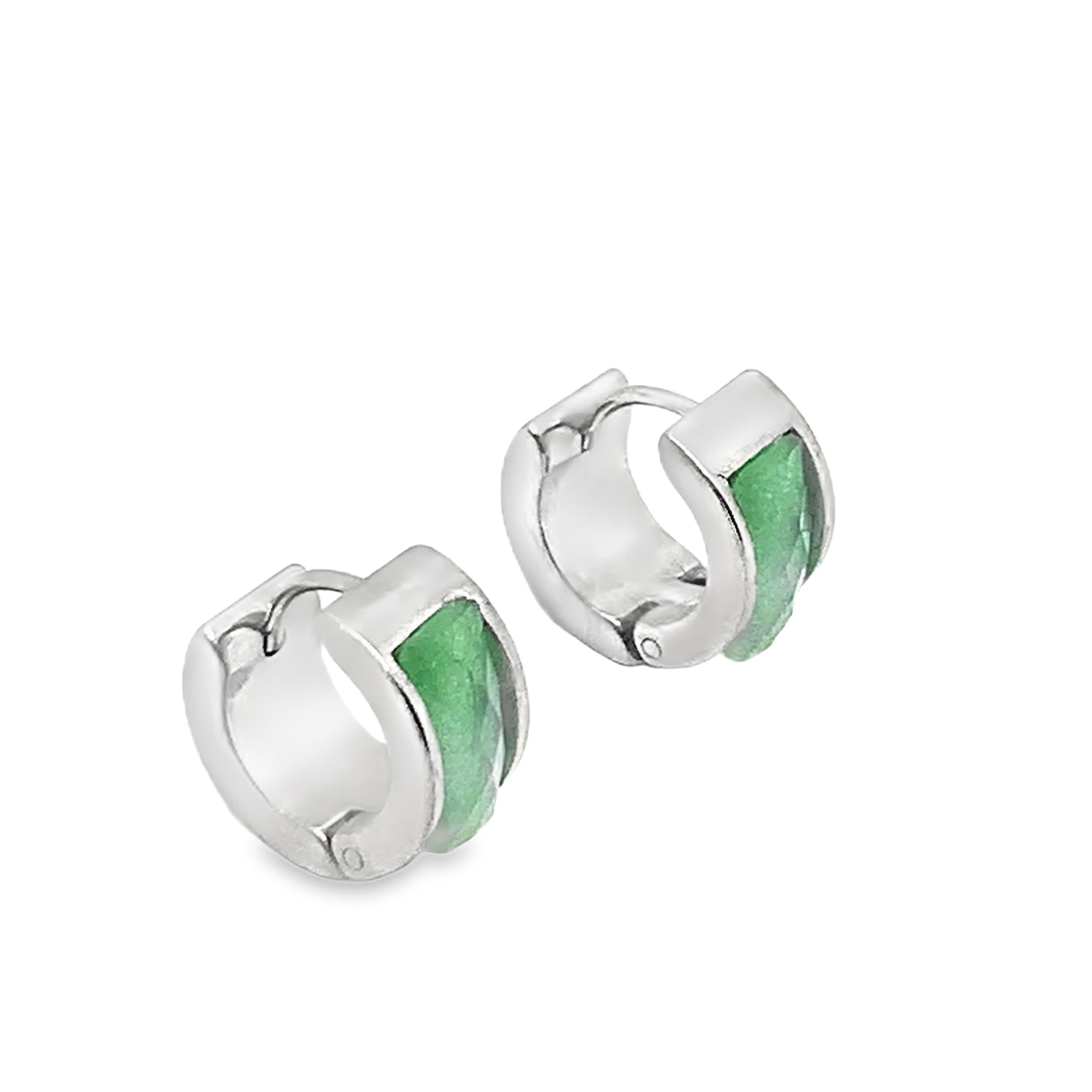 Srebrne kolczyki z kaboszonami z jadeitu o szlifie szmaragdowym