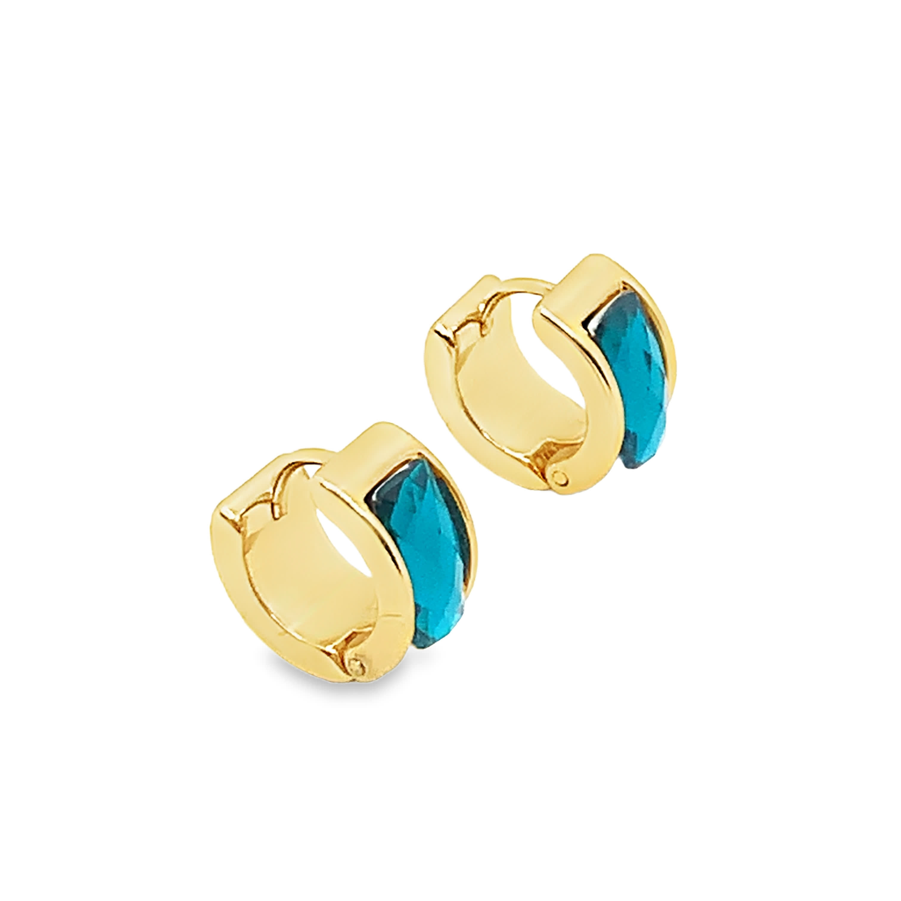 Kolczyki koła w kolorze żółtego złota z kwadratowymi kaboszonami z turkusu