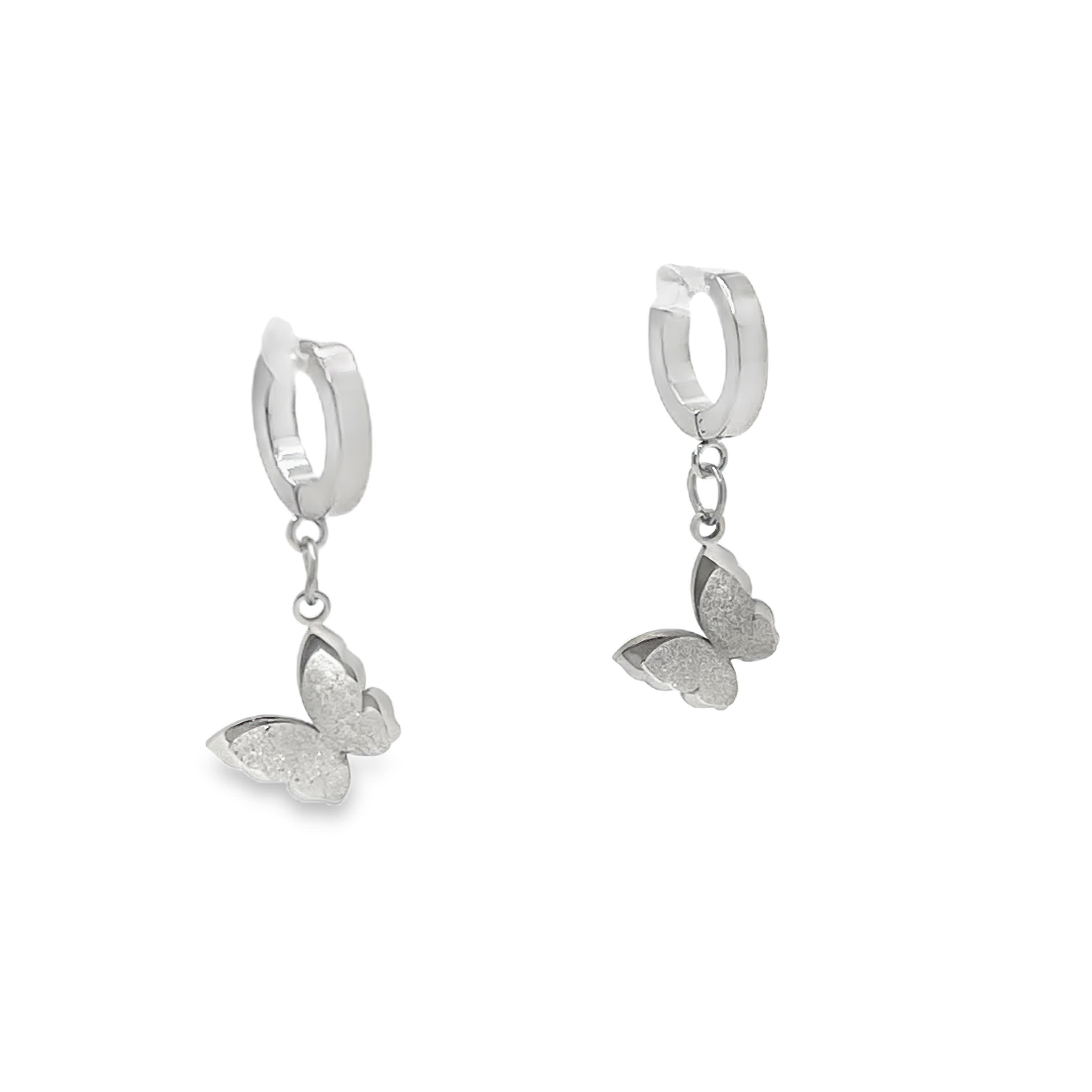 Kolczyki z motylami w białym złocie i srebrze