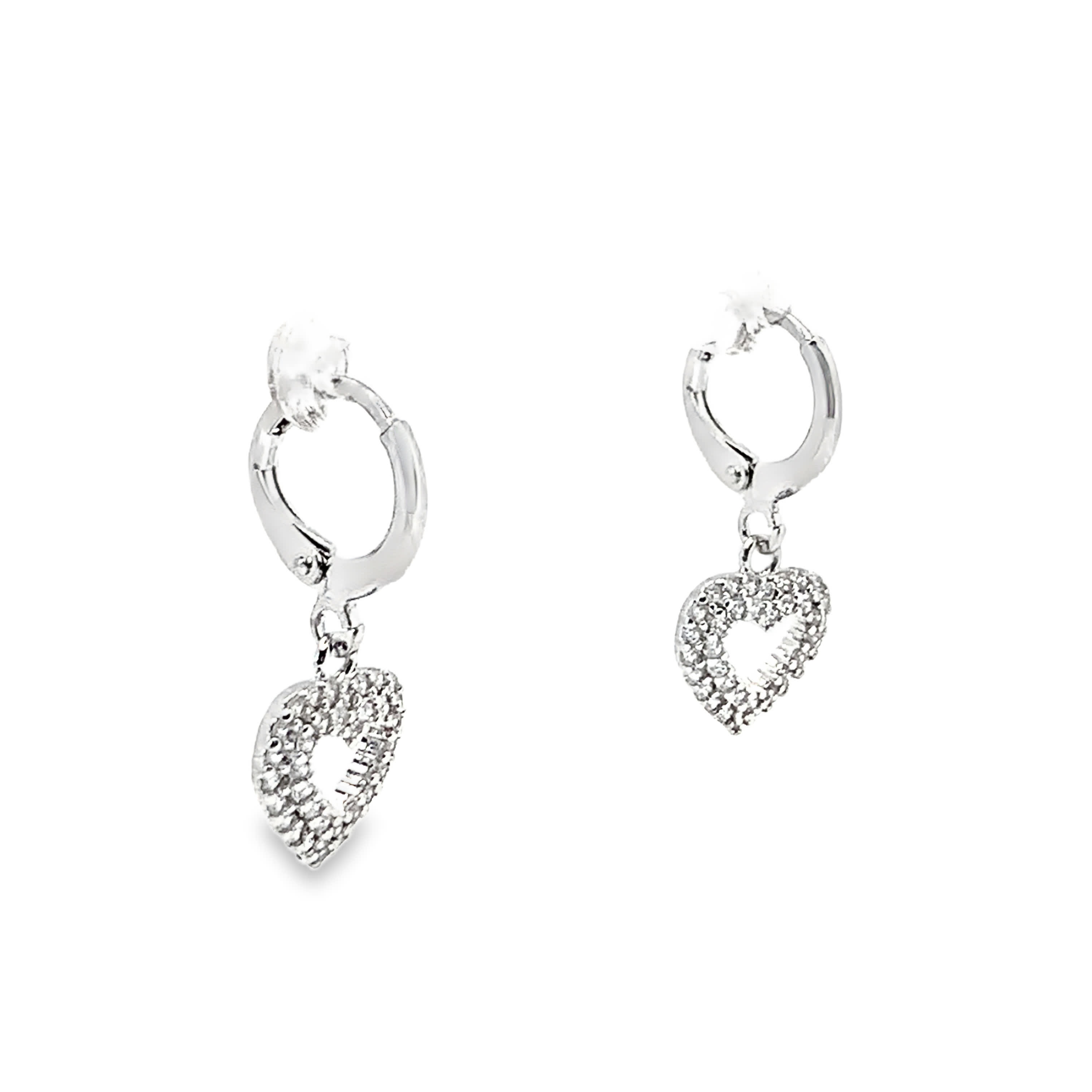 Kolczyki wiszące z białego złota w kształcie serca z diamentami w srebrze