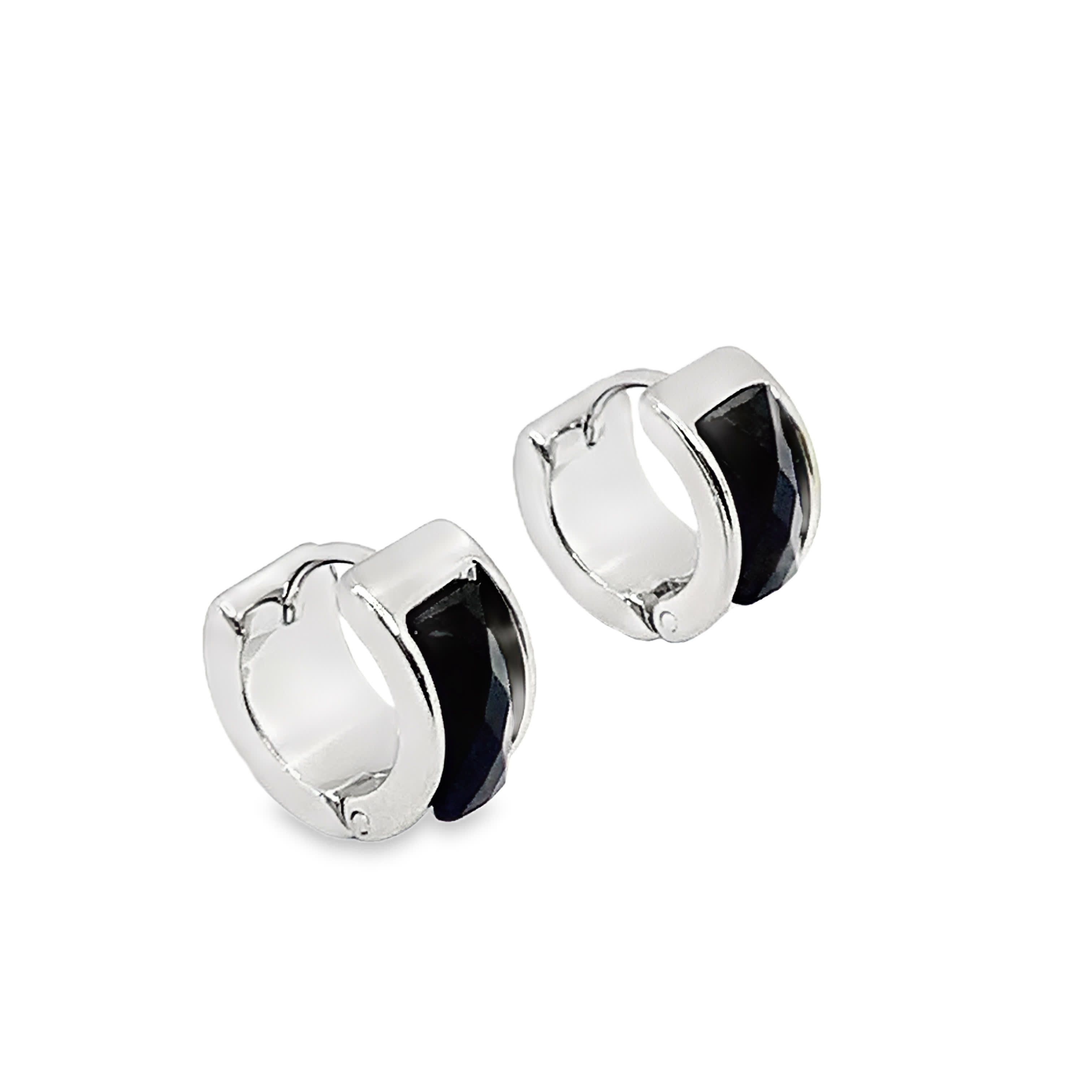 Kolczyki koła ze srebra platerowanego białym złotem z onyksem