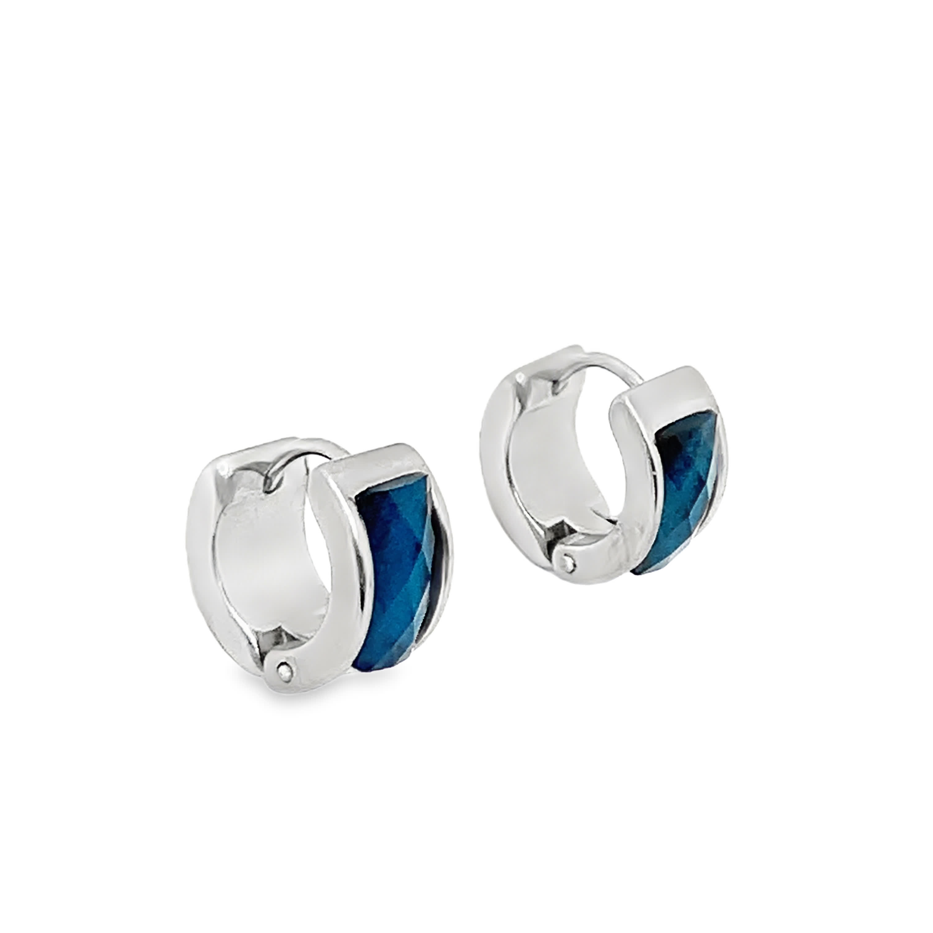 Kolczyki koła ze srebra platerowanego białym złotem z niebieskim szafirem